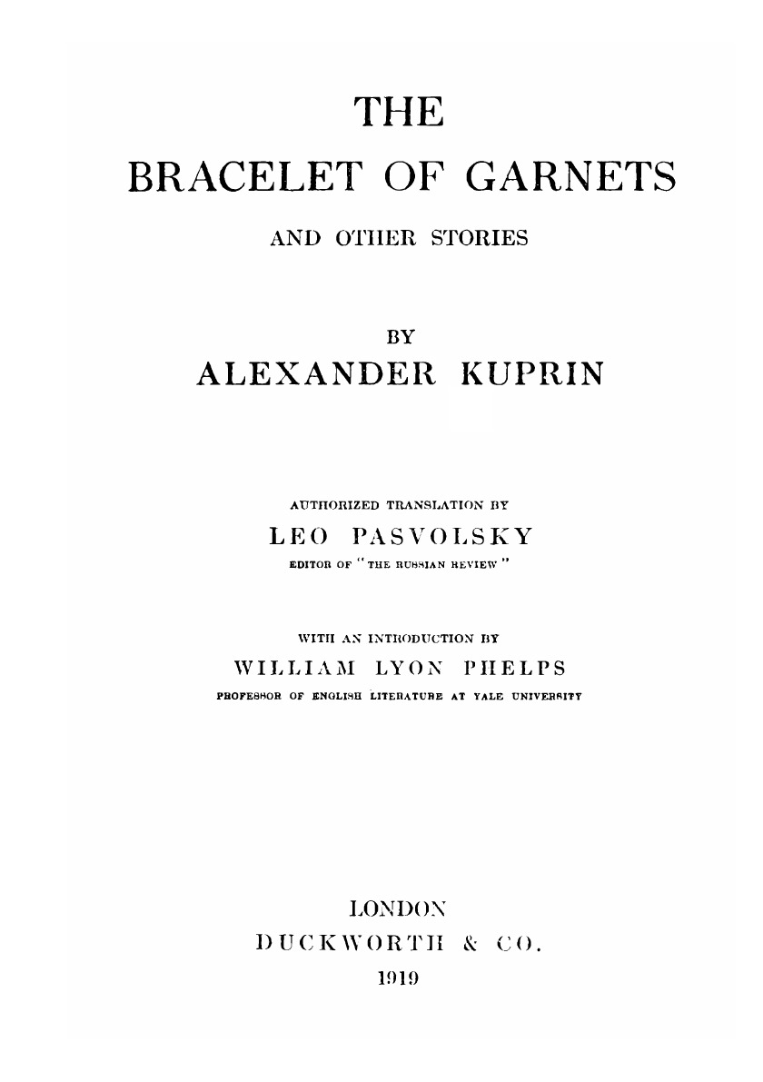 Печатная книга «The bracelet of garnets, and other stories» в мягкой обложке, язык - английский. В книге 284 страниц, она напечатана на белой офсетной бумаге плотностью 80 г/м². Формат издания — 148x210 мм. Все книги аккуратно упаковываем в прочный трёхслойный непрозрачный картонный конверт.