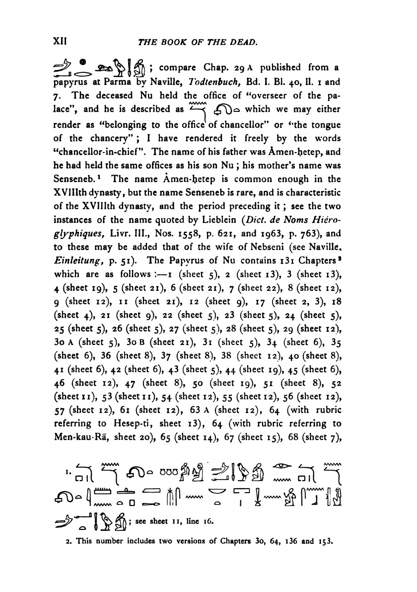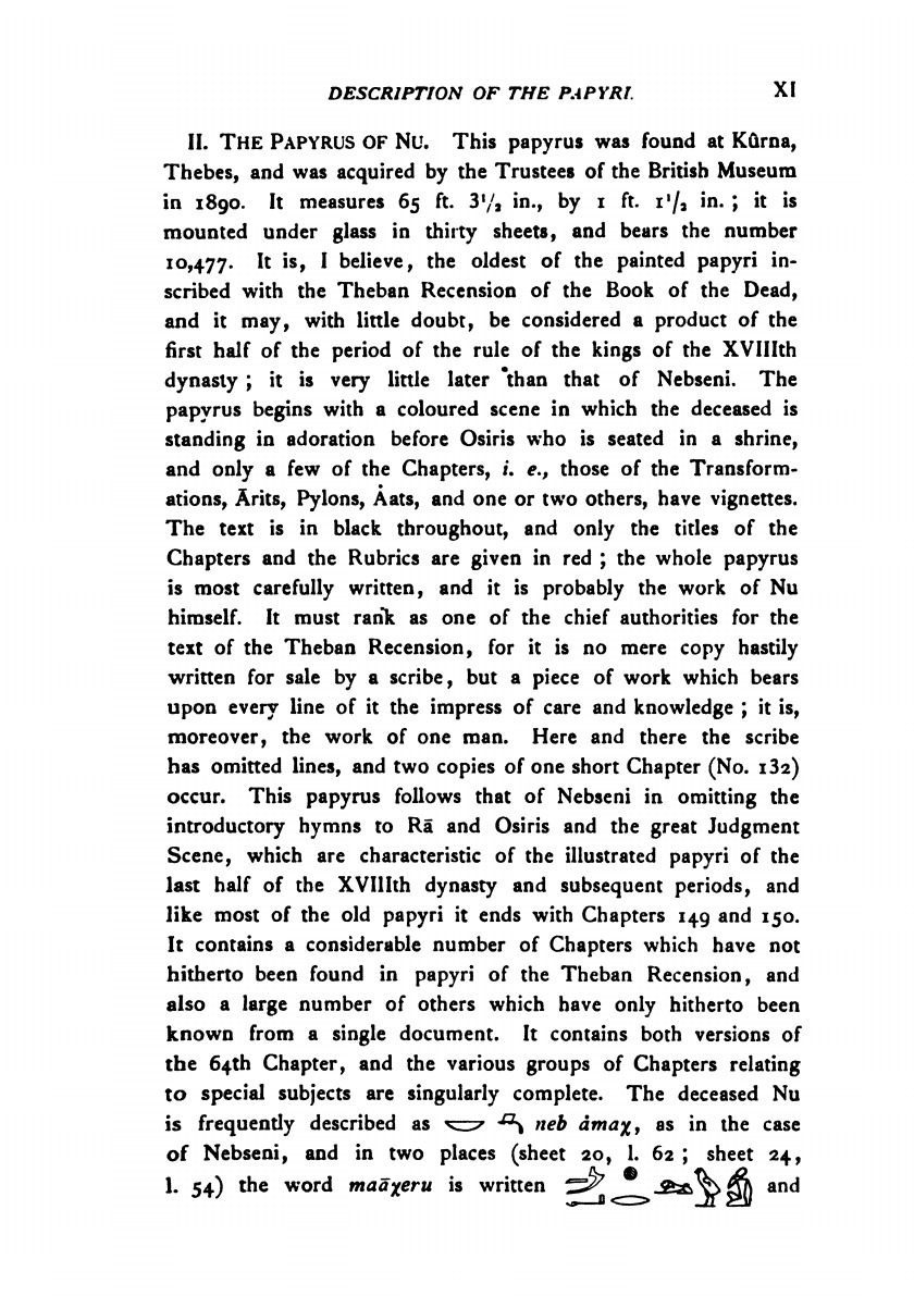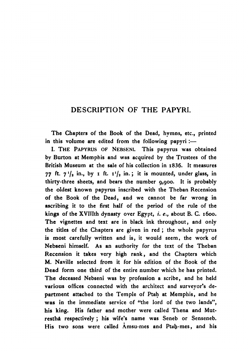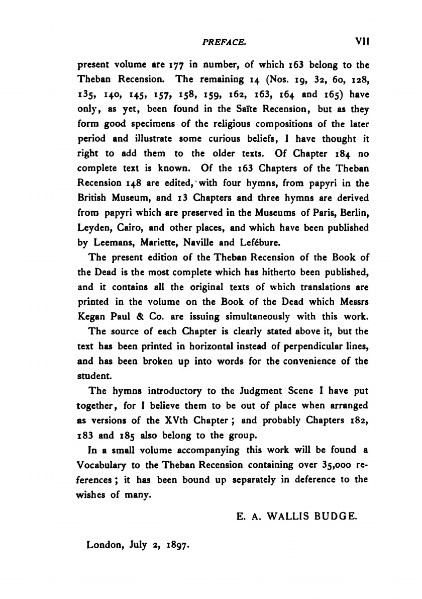 The Egyptian text according to the theban recension in hieroglyphic edited from numerous papyri, with a translation, vocabulary, etc. By E. A. Willis Budge Litt.D. Lit., F.S.A. Keeper of the Egyptian and Assyrian antiquities in the British museum