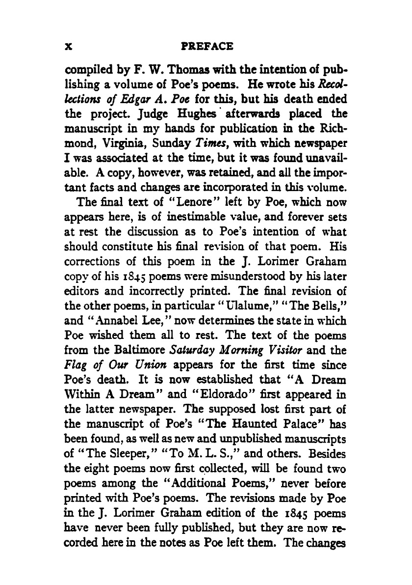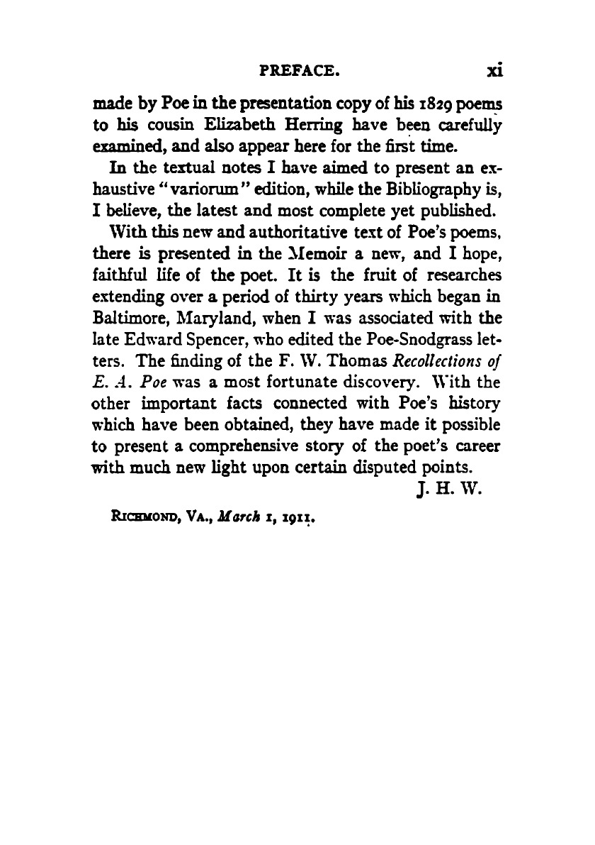 The complete poems of Edgar Allan Poe. Collected, edited, and arranged with memoir, textual notes and bibliography by J. H. Whitty.