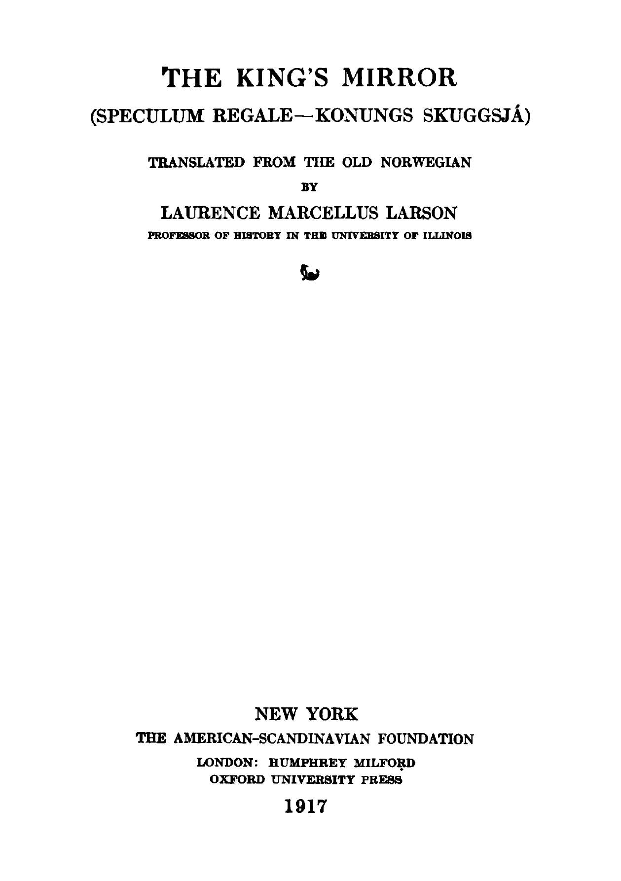 Печатная книга «The king's mirror (Speculum regale-Konungs skuggsjá) translated from the old Norwegian by Laurence Marcellus Larson» в мягкой обложке, язык - английский. В книге 405 страниц, она напечатана на белой офсетной бумаге плотностью 80 г/м². Формат издания — 148x210 мм. Все книги аккуратно упаковываем в прочный трёхслойный непрозрачный картонный конверт.
