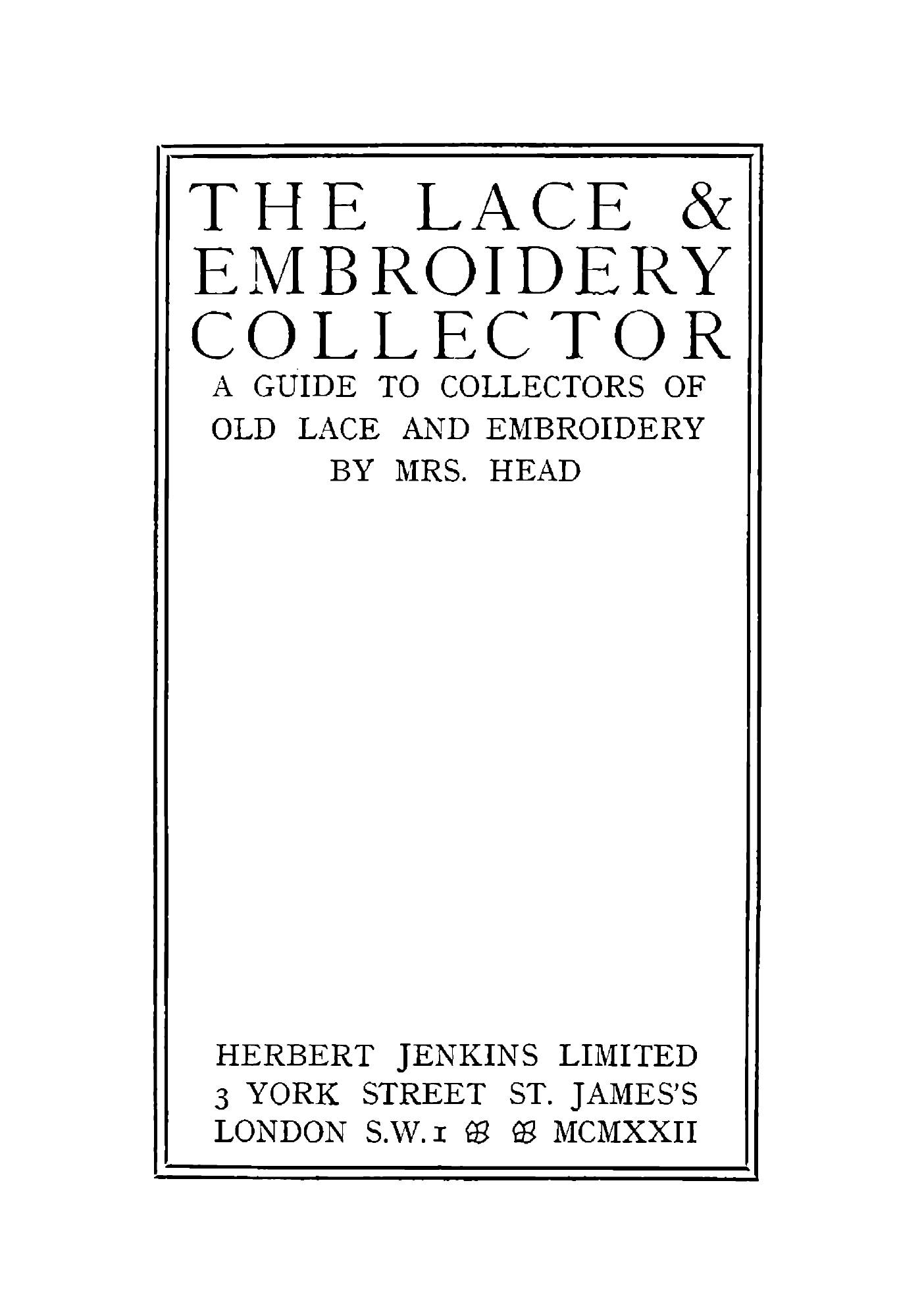 Печатная книга «The lace & embroidery collector, A guide to collectors of old lace and embroidery» в мягкой обложке, язык - английский. В книге 306 страниц, она напечатана на белой офсетной бумаге плотностью 80 г/м². Формат издания — 165x235 мм. Все книги аккуратно упаковываем в прочный трёхслойный непрозрачный картонный конверт.