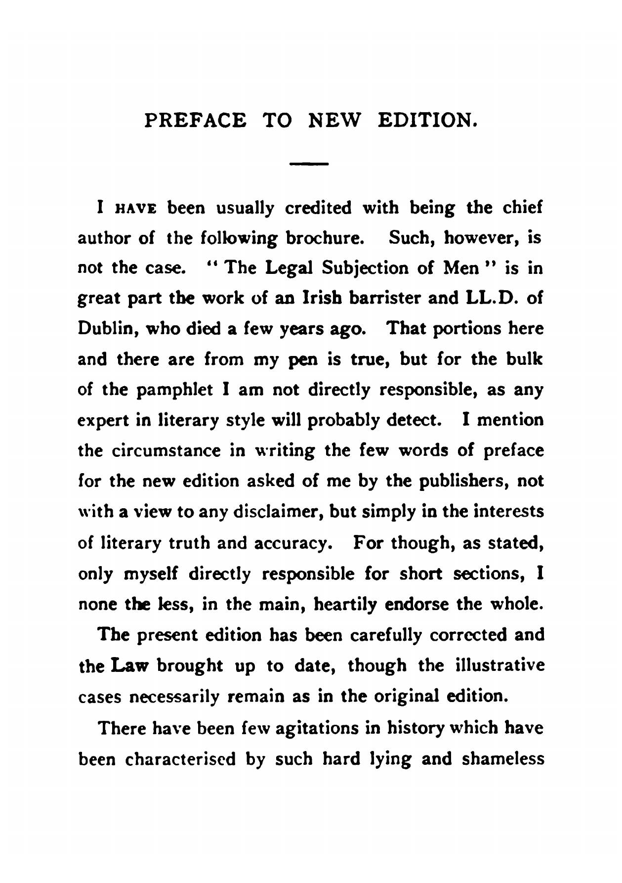 Печатная книга «The Legal Subjection of Men» в мягкой обложке, язык - английский. В книге 79 страниц, она напечатана на белой офсетной бумаге плотностью 80 г/м². Формат издания — 148x210 мм. Все книги аккуратно упаковываем в прочный трёхслойный непрозрачный картонный конверт.