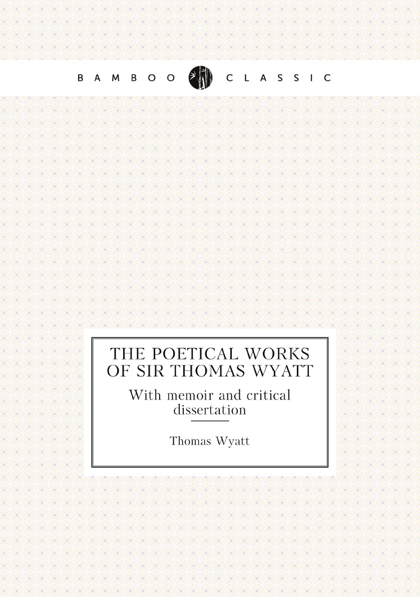 Печатная книга «The poetical works of Sir Thomas Wyatt, With memoir and critical dissertation» в мягкой обложке, язык - английский. В книге 257 страниц, она напечатана на белой офсетной бумаге плотностью 80 г/м². Формат издания — 148x210 мм. Все книги аккуратно упаковываем в прочный трёхслойный непрозрачный картонный конверт.