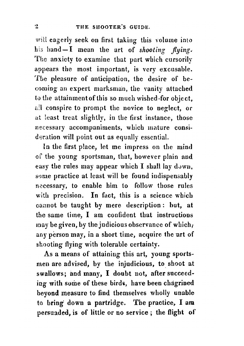 The shooter’s guide Or, Complete sportsman’s companion: containing instructions for attainment of the art of shooting flying; with directions for the choice of a fowling piece, and an ample description, of the various kinds of sporting dogs for the gun, and the best mode of breeding, rearing, and breaking them; with an account of their diseases, and the best methods of cure to which are added, directions for shooting: Grouse, Partridge, Pheasant, Woodcock, Snipe, Hare, Rabbit, and Wild Duck with their respective habits, haunts, etc. Also a comprehensive view of The Game Laws.