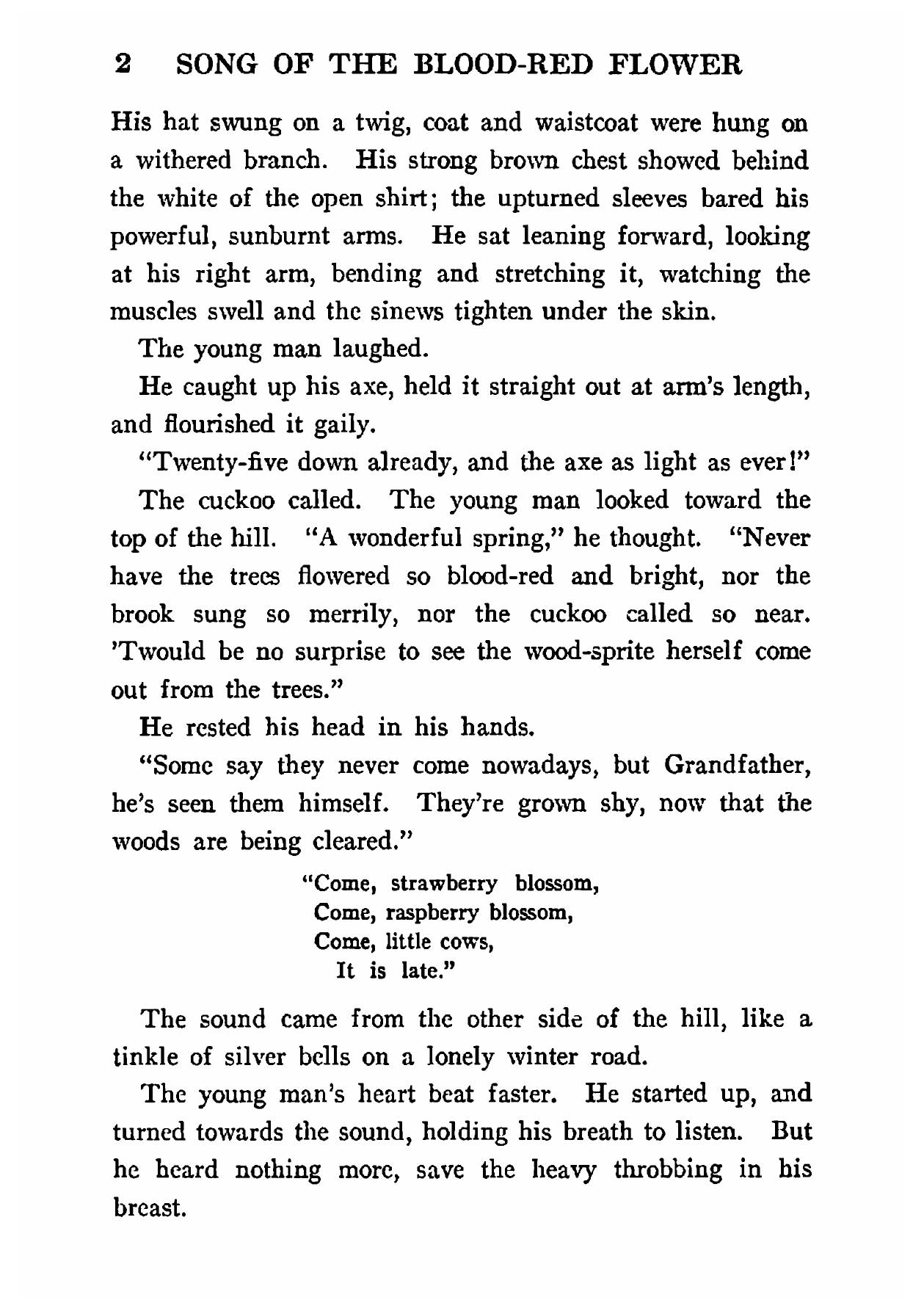 Печатная книга «The song of the blood-red flower» в мягкой обложке, язык - английский. В книге 264 страниц, она напечатана на белой офсетной бумаге плотностью 80 г/м². Формат издания — 148x210 мм. Все книги аккуратно упаковываем в прочный трёхслойный непрозрачный картонный конверт.