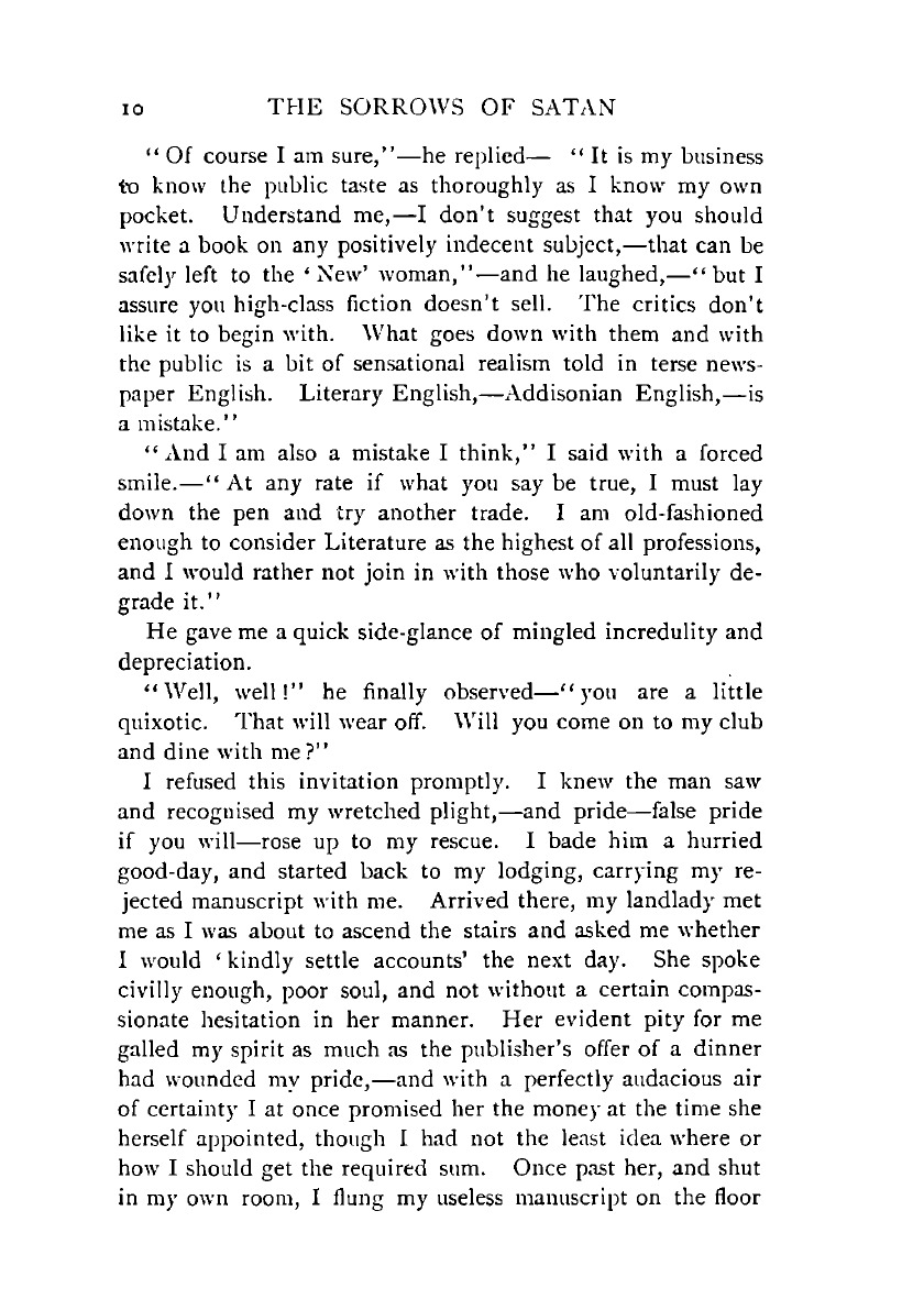 Печатная книга «The sorrows of Satan, or, The strange experience of one Geoffrey Tempest, millionaire» в мягкой обложке, язык - английский. В книге 480 страниц, она напечатана на белой офсетной бумаге плотностью 80 г/м². Формат издания — 148x210 мм. Все книги аккуратно упаковываем в прочный трёхслойный непрозрачный картонный конверт.