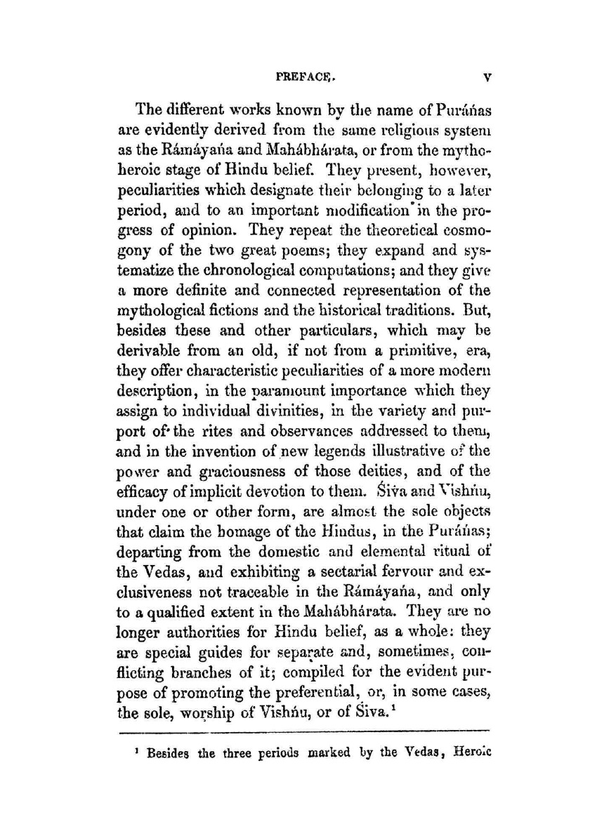 The Vishnu Purána. A system of Hindu mythology and tradition. Translated from the original sanskrit, and illustrated by notes derived chiefly from other puranas, by the late H. H. Wilson, edited by Fitzedward Hall (1829-1901). Volume one of the five.