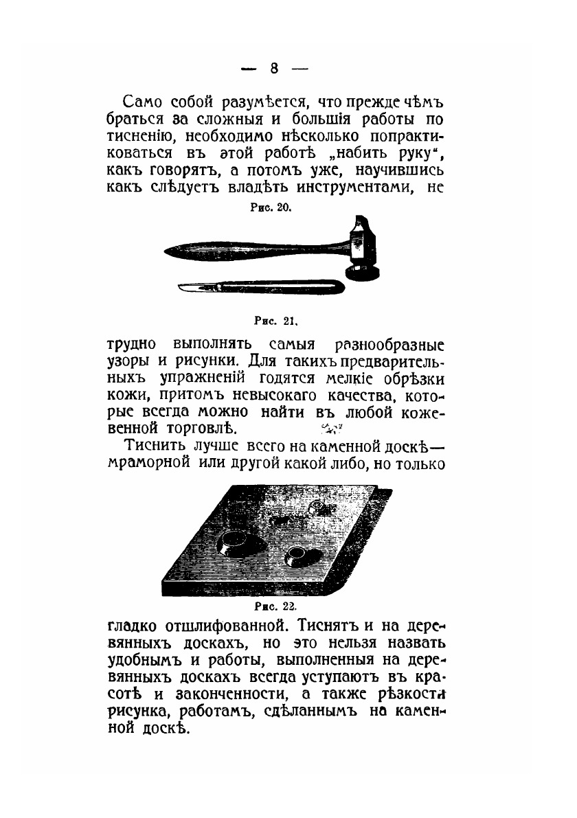 Печатная книга «Тиснение и живопись по коже» в мягкой обложке, язык - русский. В книге 40 страниц, она напечатана на белой офсетной бумаге плотностью 80 г/м². Формат издания — 148x210 мм. Все книги аккуратно упаковываем в прочный трёхслойный непрозрачный картонный конверт.