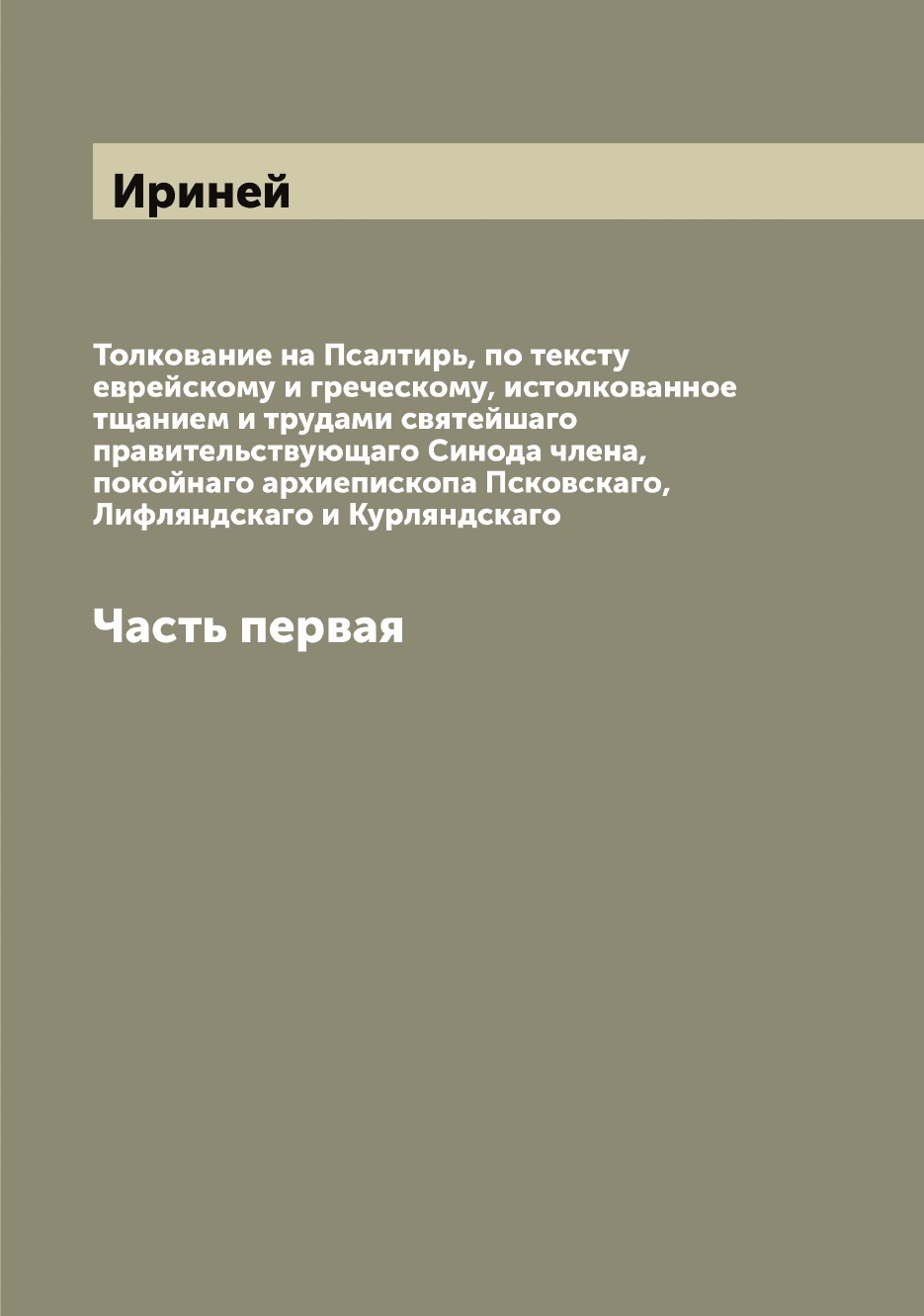 Печатная книга «Толкование на Псалтирь, по тексту еврейскому и греческому, истолкованное тщанием и трудами святейшаго правительствующаго Синода члена, покойнаго архиепископа Псковскаго, Лифляндскаго и Курляндскаго, Часть первая» в мягкой обложке, язык - русский. В книге 548 страниц, она напечатана на белой офсетной бумаге плотностью 80 г/м². Формат издания — 165x235 мм. Все книги аккуратно упаковываем в прочный трёхслойный непрозрачный картонный конверт.