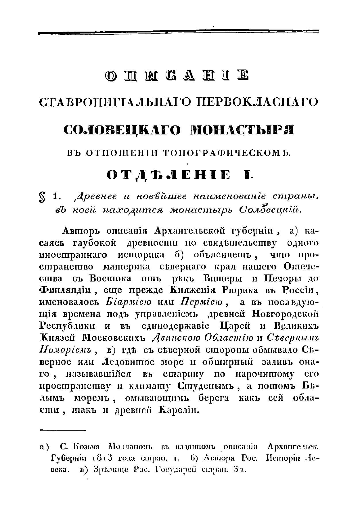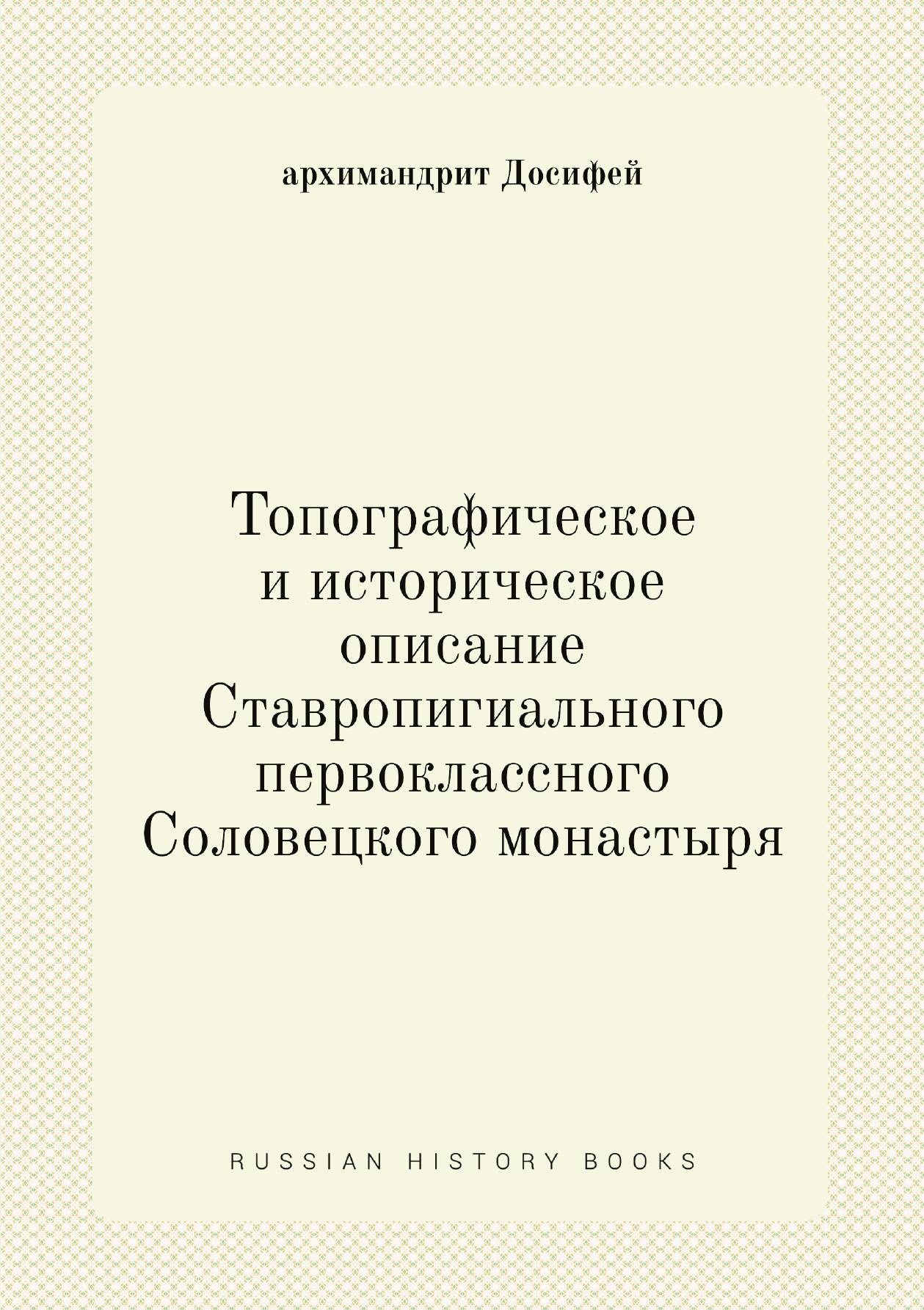 Топографическое и историческое описание Ставропигиального первоклассного Соловецкого монастыря, с описанием подведомых сей обители монастырей и скитов и с помещением всех достопримечательных подлинных царских и знаменитых духовных особ граммат, служивших к пополнению достопамятных происшествий, которые почерпнуты и из Архивных дел и старинных летописей. Собрано Соловецкого монастыря архимандритом и кавалером Досифеем.