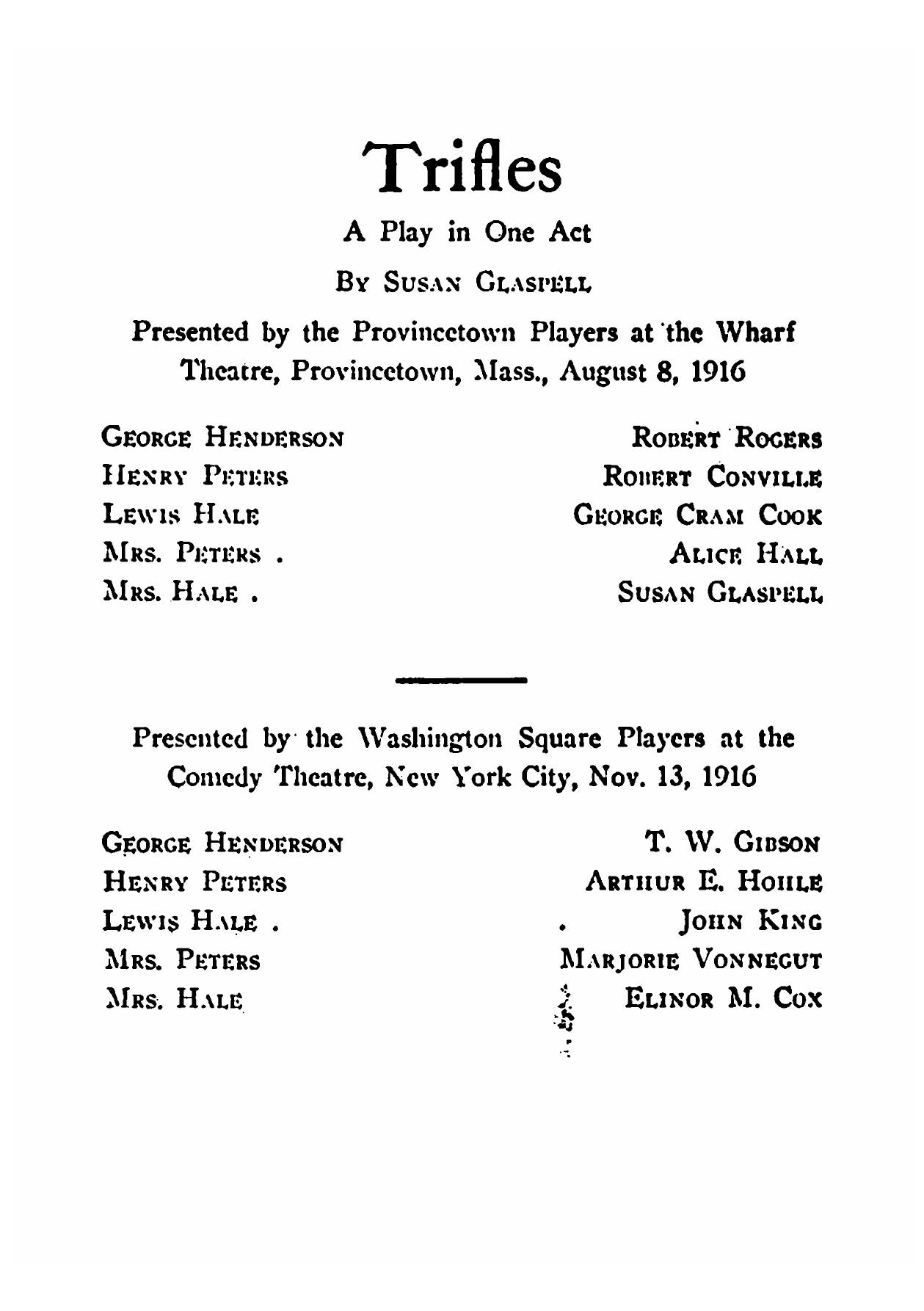 Печатная книга «Trifles» в мягкой обложке, язык - английский. В книге 36 страниц, она напечатана на белой офсетной бумаге плотностью 80 г/м². Формат издания — 148x210 мм. Все книги аккуратно упаковываем в прочный трёхслойный непрозрачный картонный конверт.