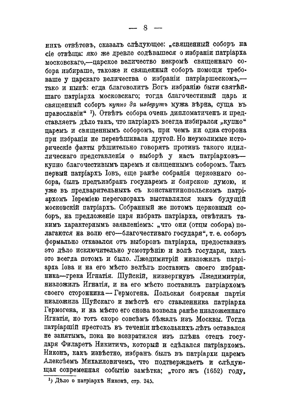 XVI и XVII столетия нашей истории невольно обращают на себя внимание обилием соборов не только земских, для которых особенно первая половина XVII века считается золотым временем, но и соборов церковных, которые были в указанные столетия особенно часты, а потом, со времени учреждения Св. Синода, прекратились вплоть до настоящего времени.