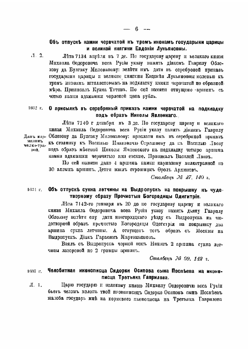 Материалы, извлеченные из документов Московского отделения Общ. арх. Министерства императорского двора