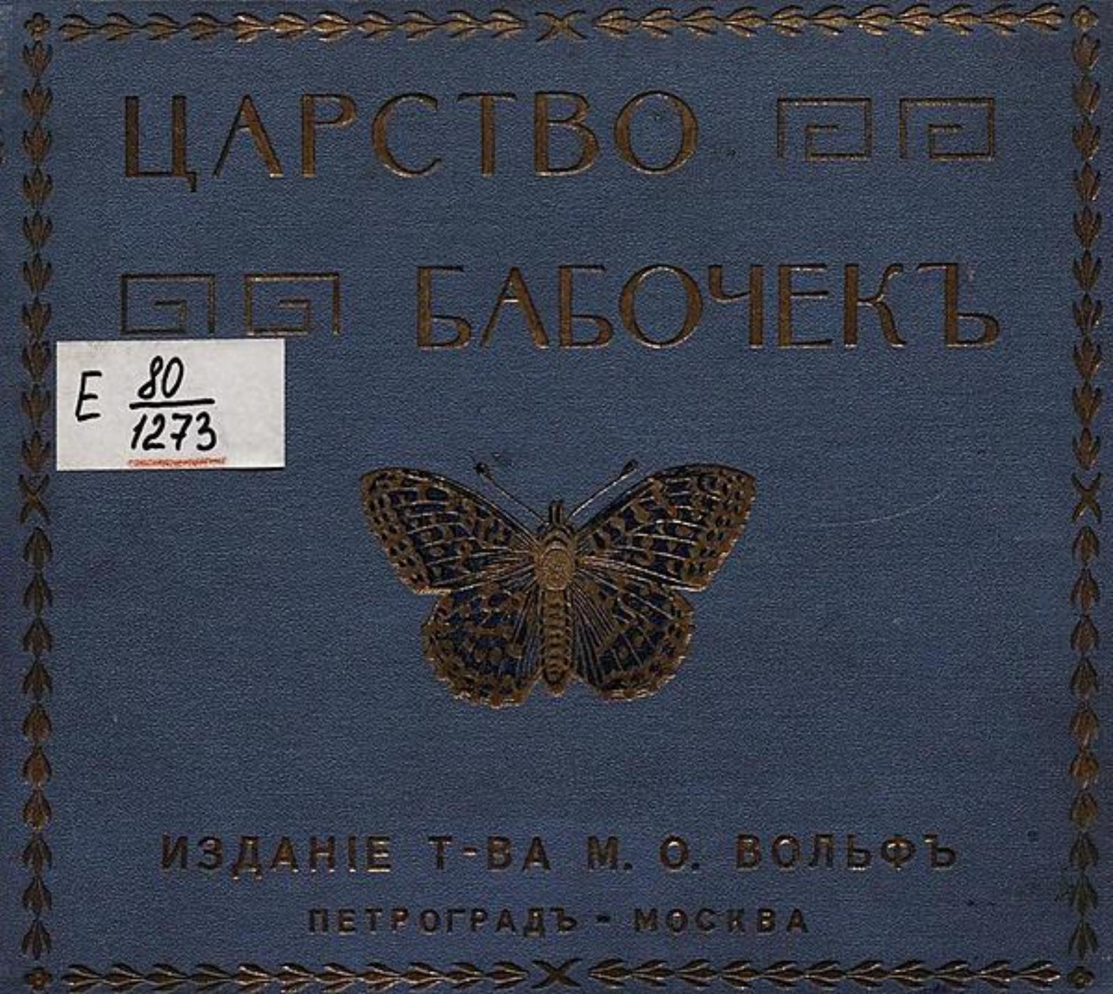 Берлин, А. Царство бабочек : 129 раскраш. изображений бабочек на 12 табл. в красках, с описат. текстом проф. А. Берлина / Пер. М. М. Кругловского. — Санкт-Петербург ; Москва : Т-во М. О. Вольф, 1913 (Санкт-Петербург). — [4], 28 с., 12 л. цв. ил.; 16?19.