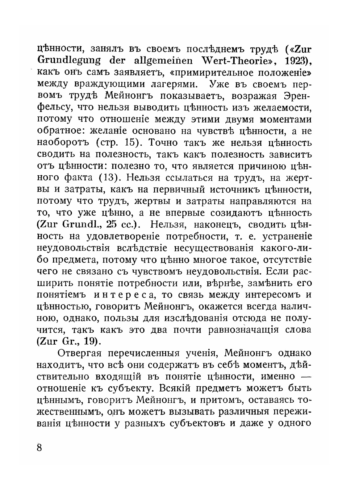 Ценность есть нечто всепроникающее, определяющее смысл и всего мира в целом, и каждой личности, и каждого события, и каждого поступка. Всякое малейшее изменение, вносимое в мир каким бы то ни было деятелем, имеет ценностную сторону и предпринимается не иначе как на основе каких-либо ценностных моментов и ради них. Все сущее или могущее быть и вообще как-либо принадлежать к составу мира таково, что оно не только есть, но еще и содержит в себе оправдание или осуждение своего бытия: обо всем можно сказать, что оно хорошо или дурно, что должно или не должно, следует или не следует, чтобы оно было, что оно существует по праву или против права (не в юридическом смысле этого слова).Вездесущие ценностного момента есть условие, не облегчающее, а, наоборот, чрезвычайно затрудняющее опознание его и выработку отвлеченного понятия ценности. Встречая в опыте ценностный момент в неразрывной связи с бытием, трудно отделить одну сторону от другой так, чтобы мыслить в одних понятиях чисто бытийственную сторону, очищенную в абстракции от ценностного момента, а в других понятиях один лишь чисто ценностный момент. Мало того, возможно, что задача опознания этих двух сторон мира может быть осуществлена даже и в абстракции не путем мысленного разделения их, как можно отделить, например, мысленно цвет от протяженности, а лишь при условии мышления о бытии под особым углом зрения, открывающим некоторый аспект его, понятный лишь на основе своеобразного сочетания разнородных сторон мира.