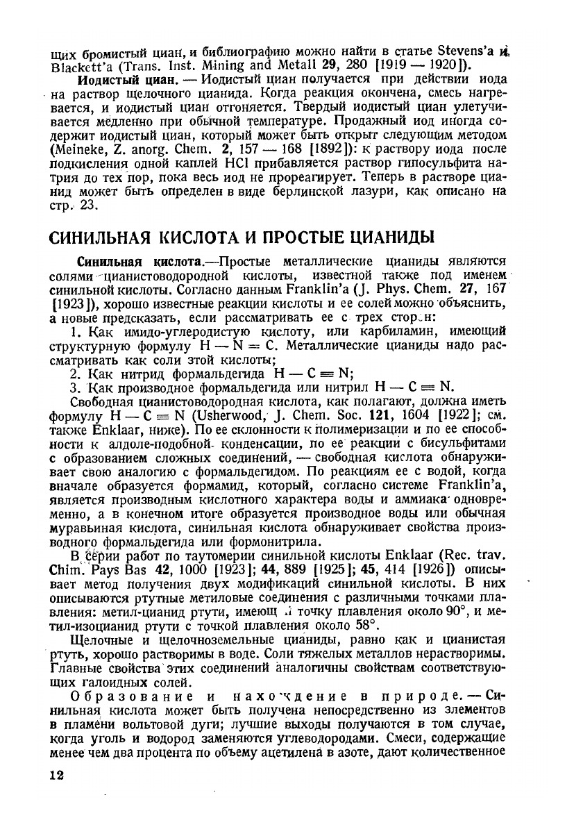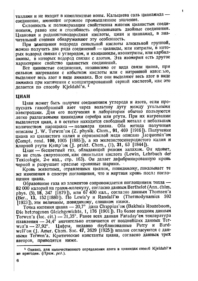Настоящая книга, описывающая свойства, получение, применение и главным образом анализ цианистых соединений, являясь в основном учебным пособием для студентов соответствующих вузов, предназначена также для заводских инженеров и исследовательских работников институтов и лабораторий специальных отраслей химпромышленности. Данная книга допущена в качестве учебного пособия к изданию в 1933 г. Главным управлением учебными заведениями НКТП СССР.