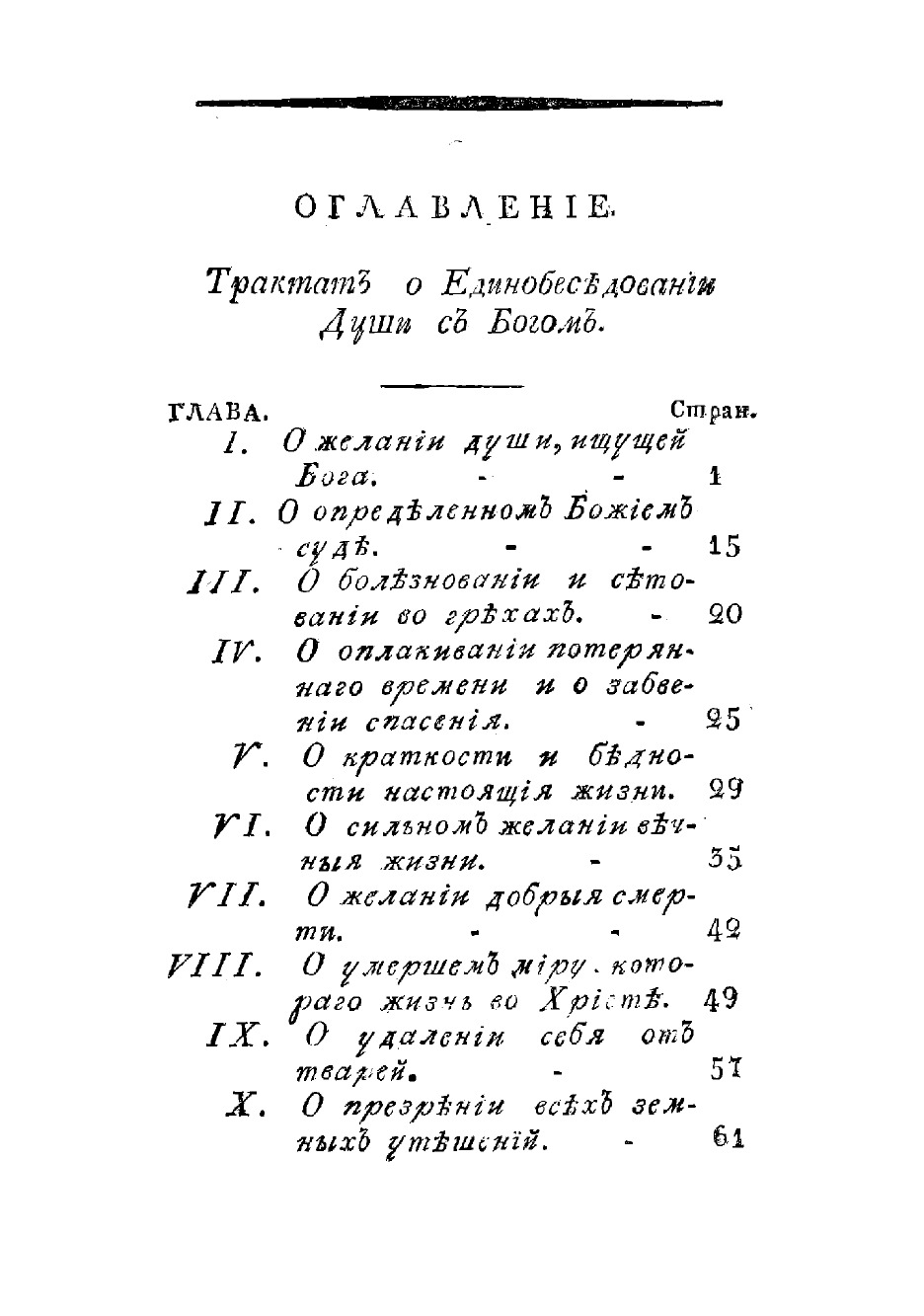 1. О единобеседовании души с Богом, 2. Луг лилий, 3. О трех скиниях, или О трех добродетелях, как-то: о нищите, смирении и терпении