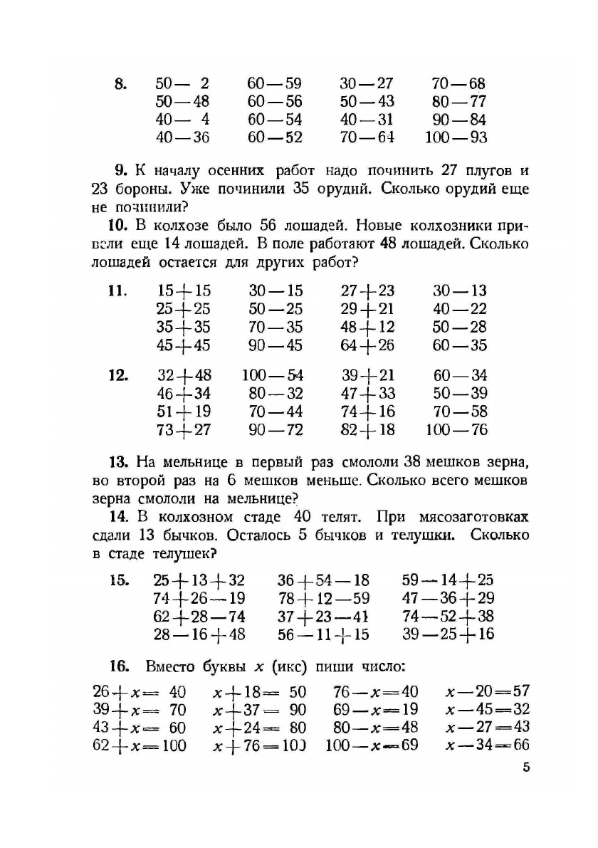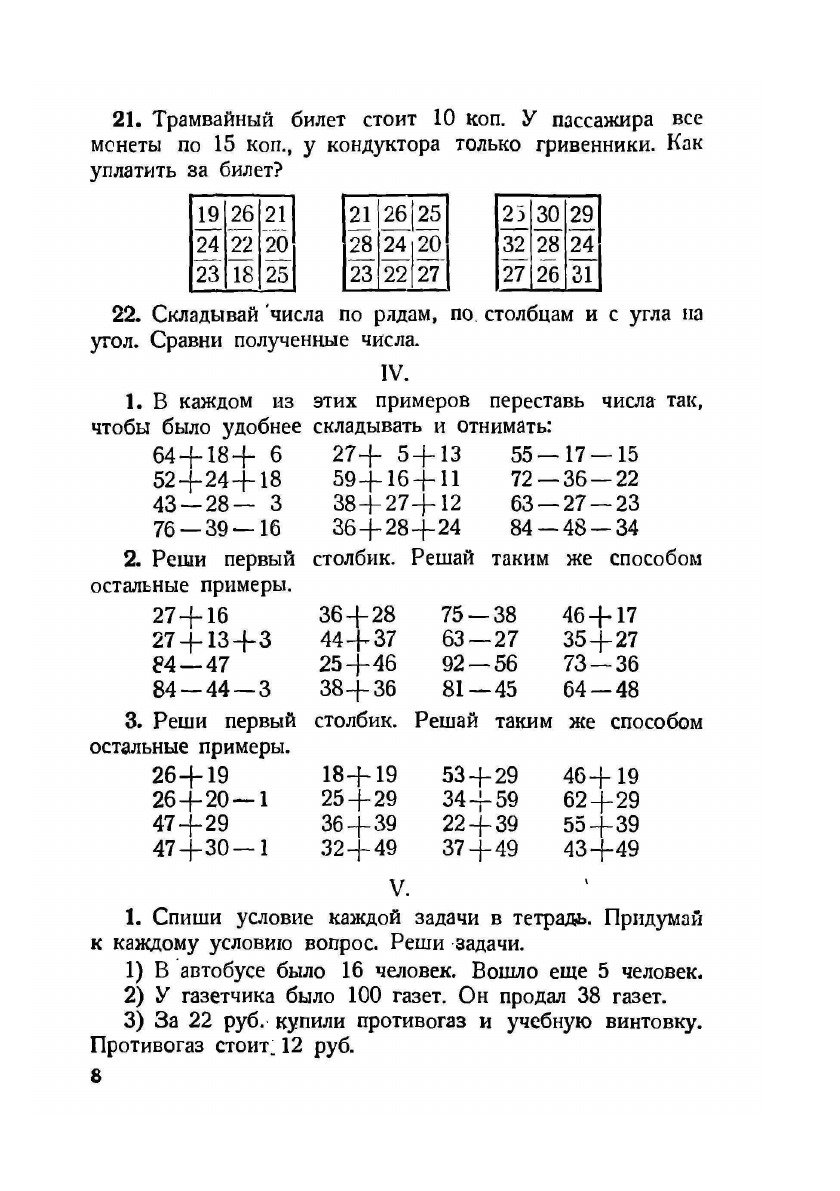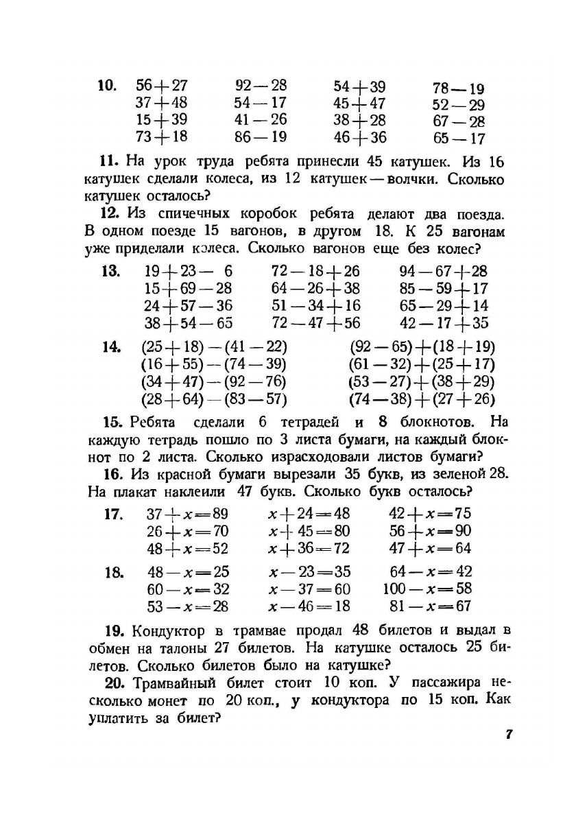 На первых порах, изучая состав чисел и счет до 10, дети учатся только узнавать цифры. В это время применяется разрезной дидактический материал. Письмо цифр начинается позднее и протекает медленнее. На первых порах в некоторых примерах встречаются цифры, которые дети еще не умеют писать. В таких случаях дается указание: «прибавляй и отнимай устно».