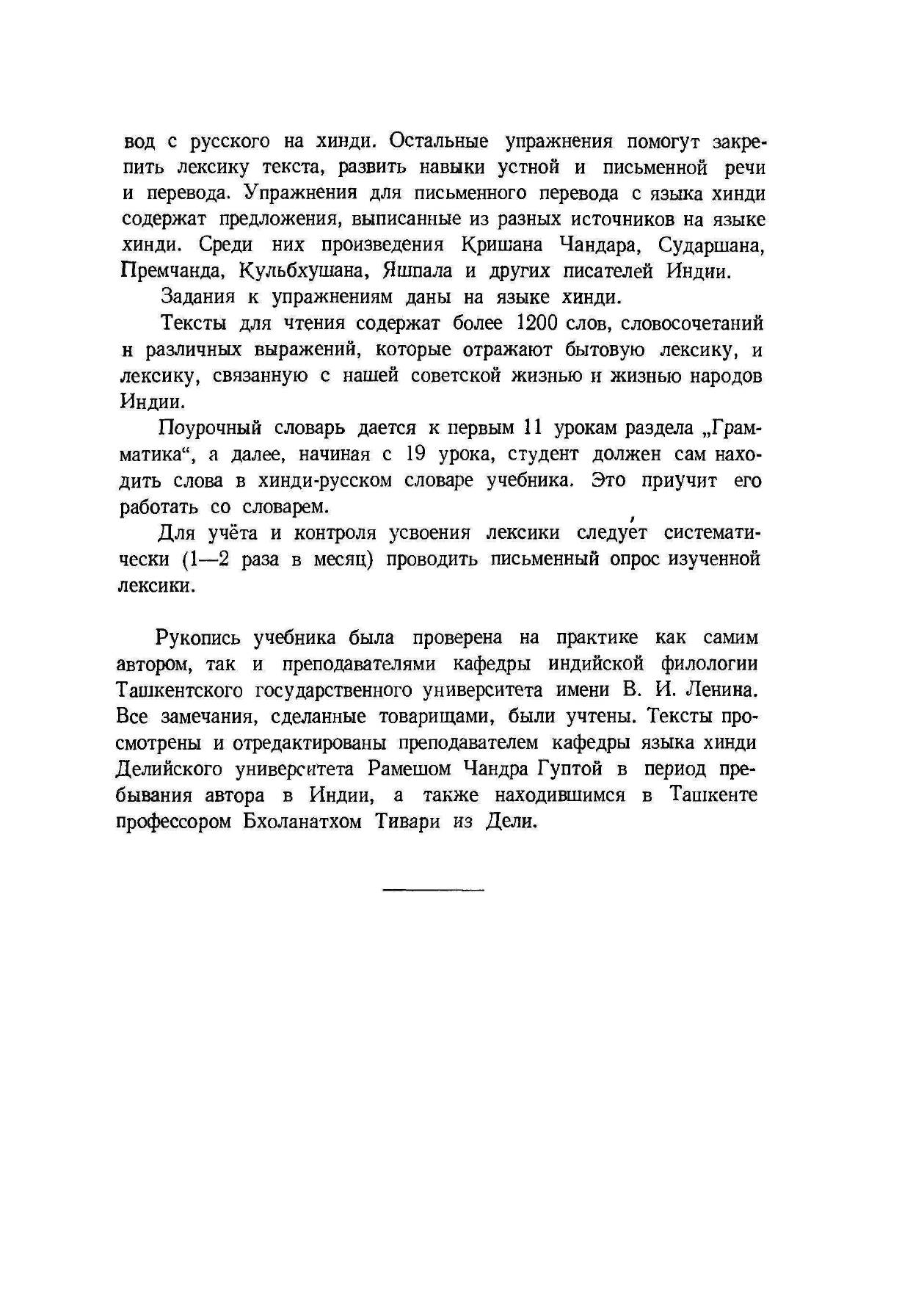 Цель учебника — изложить грамматический материал, предусмотренный программой для первого курса, помочь студентам усвоить более 1200 слов и словосочетаний, отражающих различные стороны жизни, истории, культуры народов Индии и Советского Союза, а также научить студентов понимать речь на языке хинди и говорить на нем в пределах пройденного материала.