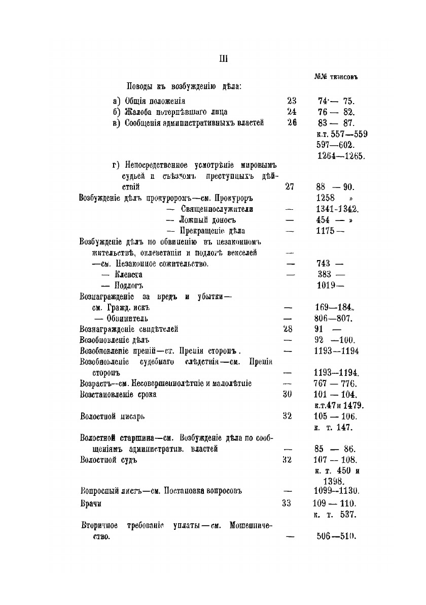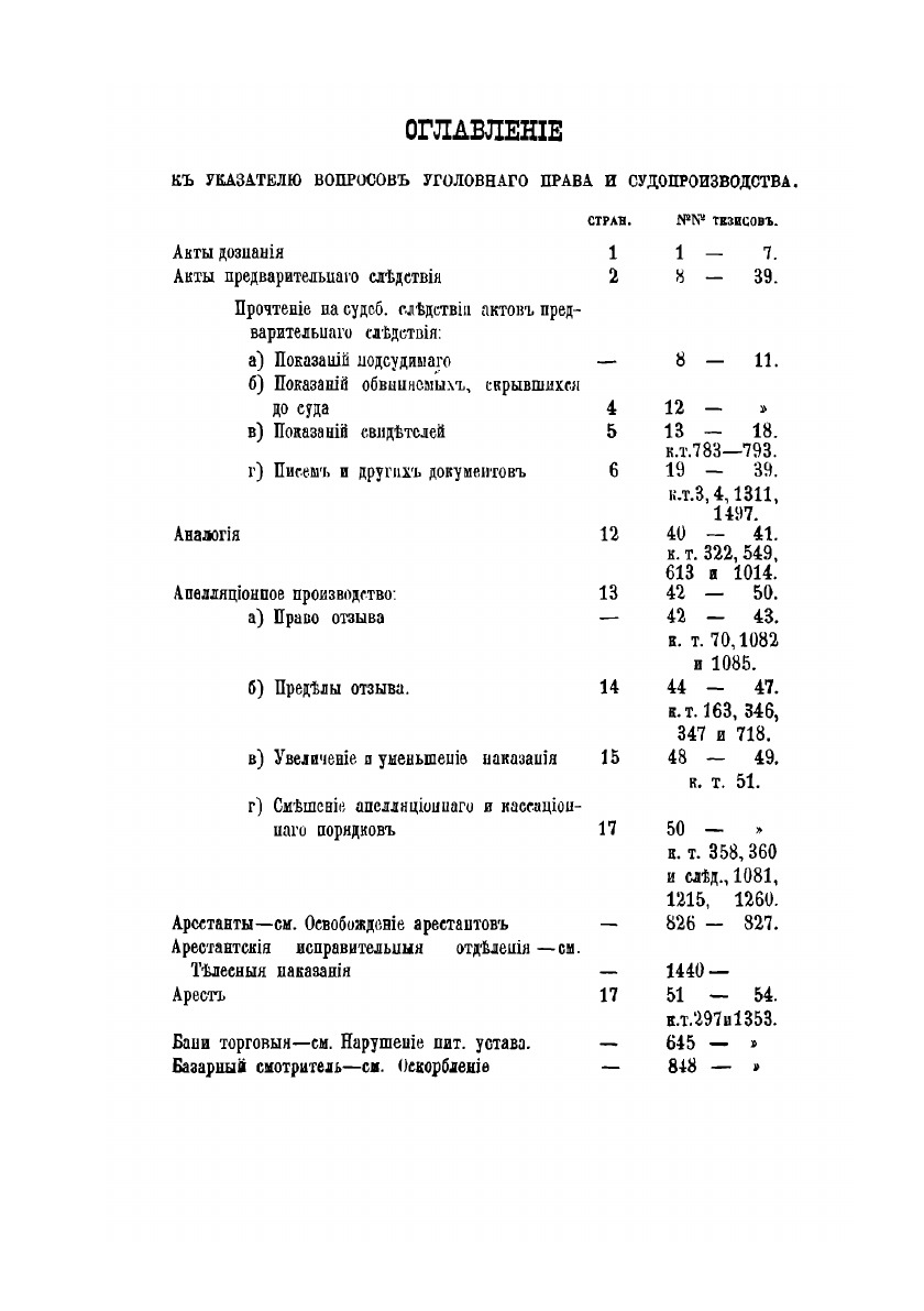 В 1874 году издан был Министерством Юстиции, составленый бывшим обер-секретарем Г. И. Трахтенбергом указатель к решениям Уголовного Кассационного и общего собрания 1-го и кассационных Д-тов Правительствующего сената за 1866-1873 годы.