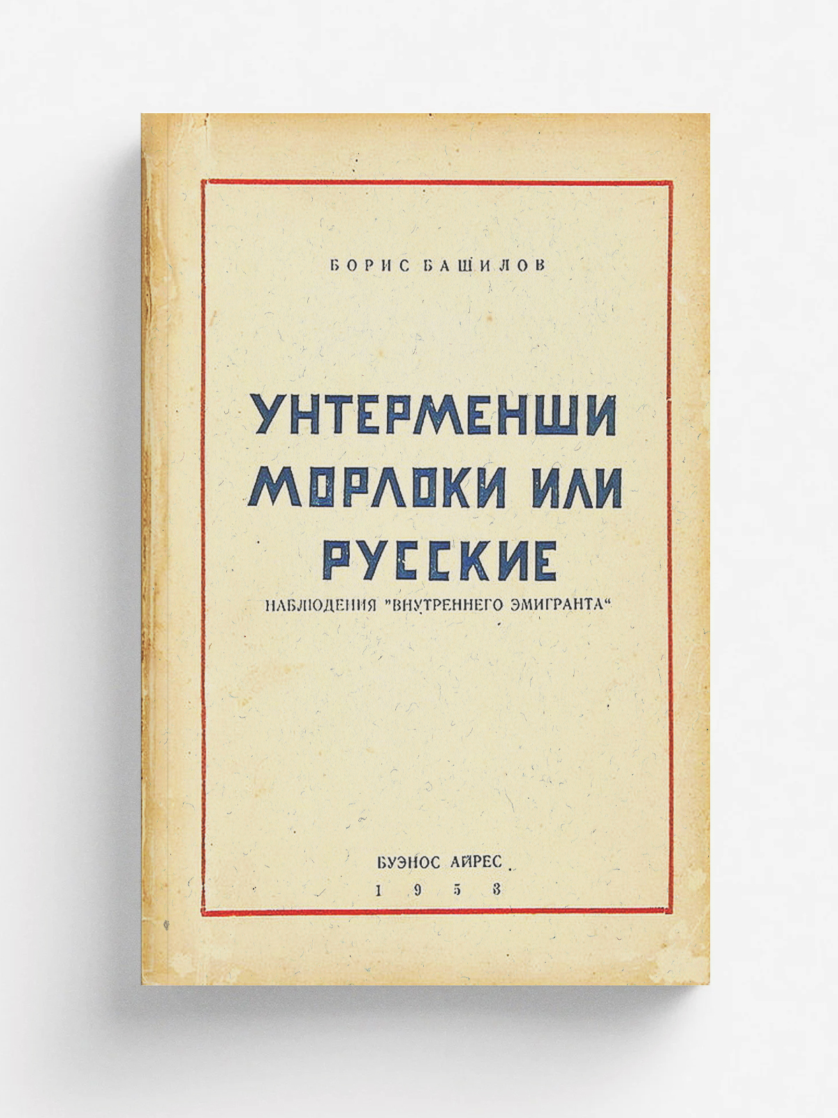 Башилов, Борисов Платонович (1908–1970) Унтерменши, морлоки или русские. Наблюдения «внутреннего эмигранта». / Борис Башилов. Буэнос-Айрес : [Издание автора], 1953. — 150, [1] с.; 19,5?14 см.