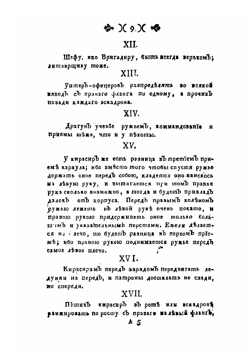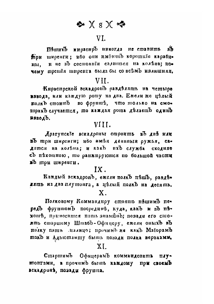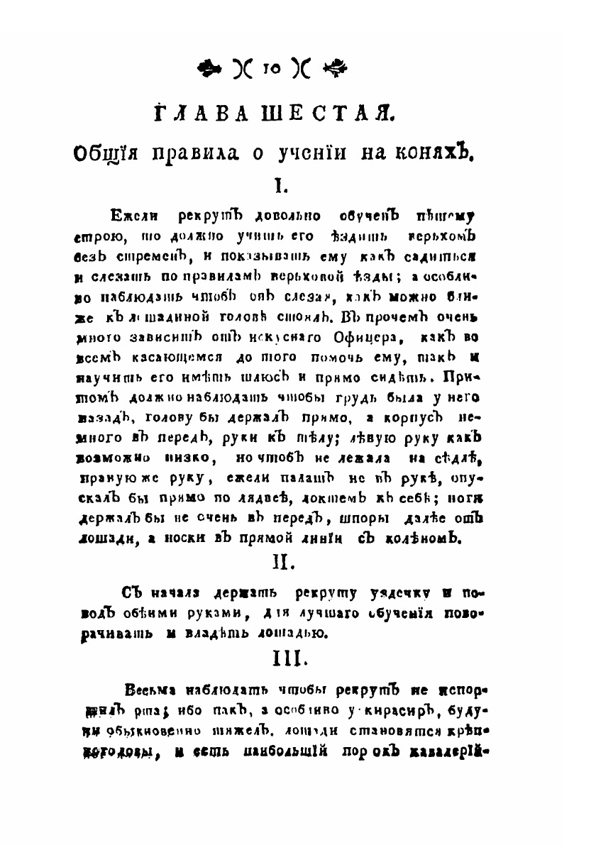 Оригинальное название: Устав коннаго полкаУстав конного полка 1797 г. - полное описание и регламент действий регулярного кавалерийского полка. Данным Уставом вводились фактически существовавший в русской регулярной кавалерии 2-шереножный развернутый строй и походная колонна «по-четыре». Ряд статей посвящены личной подготовке кавалеристов и правилам содержания конного состава. Устав 1797 г. отражал не только повышение требований к состоянию кавалерийских частей, но и увеличение в правление императора Павла I доли тяжелой кавалерии в российской армии.