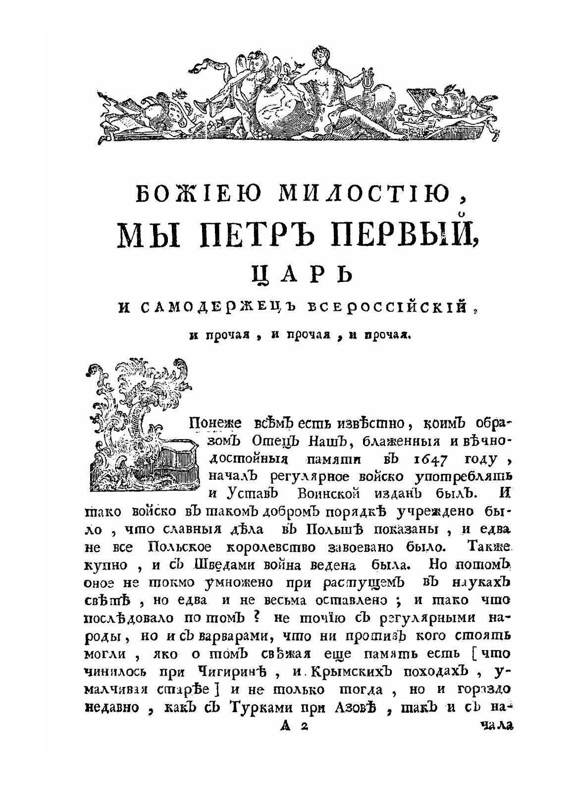 Устав воинский о должности генералов-фельдмаршалов, и всего генералитета, и протчих чинов, которые при войске надлежат быть, и оных воинских делах и поведениях, что каждому чинить должно. Напечатася повелением ея императорскаго величества.