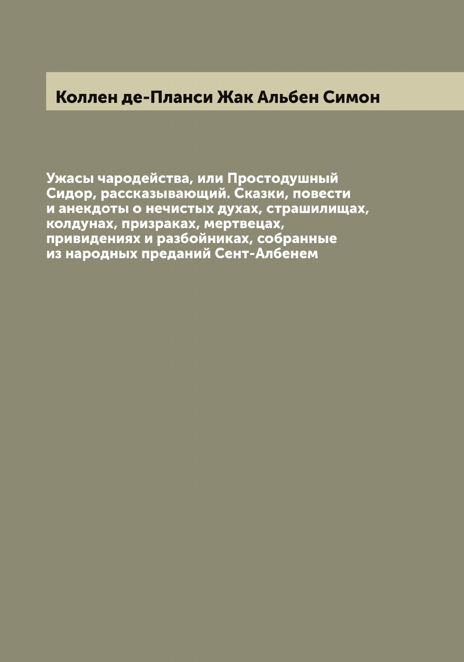 Печатная книга «Ужасы чародейства, или Простодушный Сидор, рассказывающий. Сказки, повести и анекдоты о нечистых духах, страшилищах, колдунах, призраках, мертвецах, привидениях и разбойниках, собранные из народных преданий Сент-Албенем» в мягкой обложке, язык - русский. В книге 171 страниц, она напечатана на белой офсетной бумаге плотностью 80 г/м². Формат издания — 165x235 мм. Все книги аккуратно упаковываем в прочный трёхслойный непрозрачный картонный конверт.