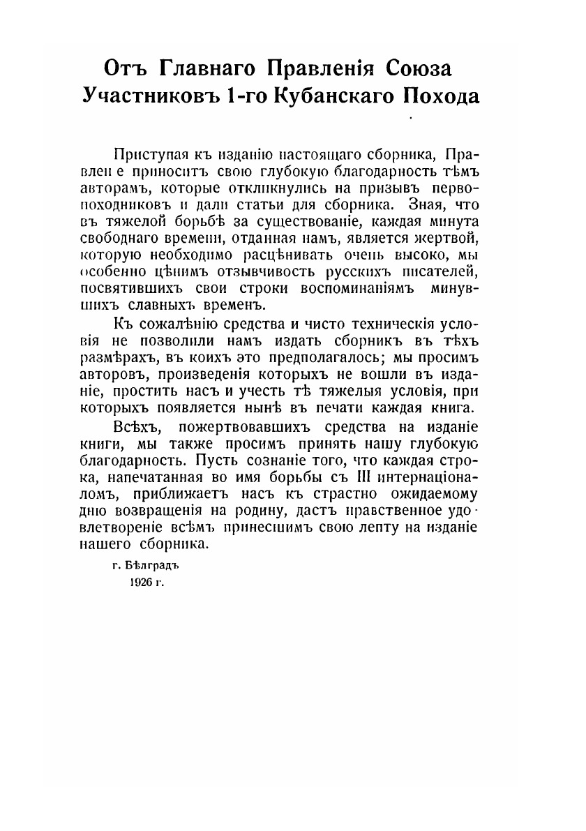 Эта книга — репринт оригинального издания (издательство "Белград. Издание Главного Правления Союза Участников 1-го Кубанского Похода", 1926 год), созданный на основе электронной копии высокого разрешения, которую очистили и обработали вручную, сохранив структуру и орфографию оригинального издания. Редкие, забытые и малоизвестные книги, изданные с петровских времен до наших дней, вновь доступны в виде печатных книг.