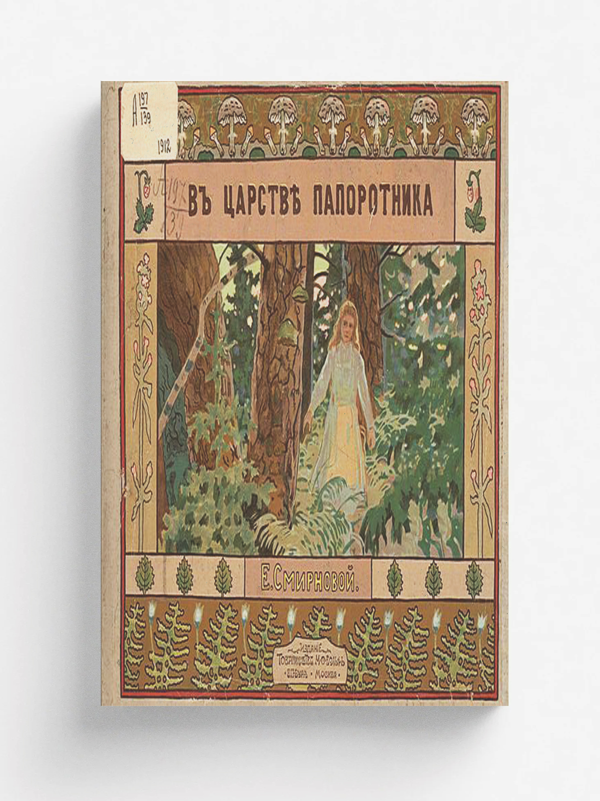 Смирнова, Е. В царстве папоротника : Волшеб. сказка для чтения детей мл. возраста и для постановки на дет. домаш. сценах / [Соч.] Е. Смирновой; С хромолит. картинами Б. Смирнова. — Санкт-Петербург ; Москва : Т-во М. О. Вольф, 1912 (Санкт-Петербург). — [4], 52 с., 1 л. фронт. (цв. ил.), 11 л. цв. ил. : нот.; 25?31.