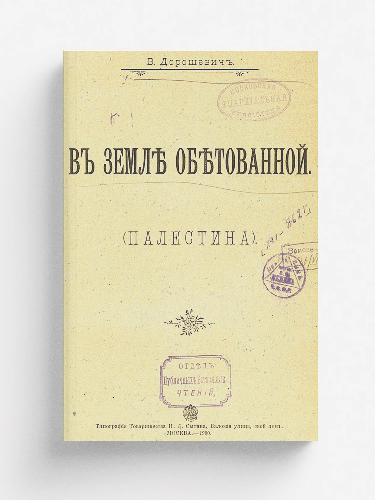 Дорошевич, Влас Михайлович (1865–1922). В земле обетованной : (Палестина) / В. Дорошевич. — Москва : тип. т-ва И.Д. Сытина, 1900. — 232 с., 76 ил.; 24.
