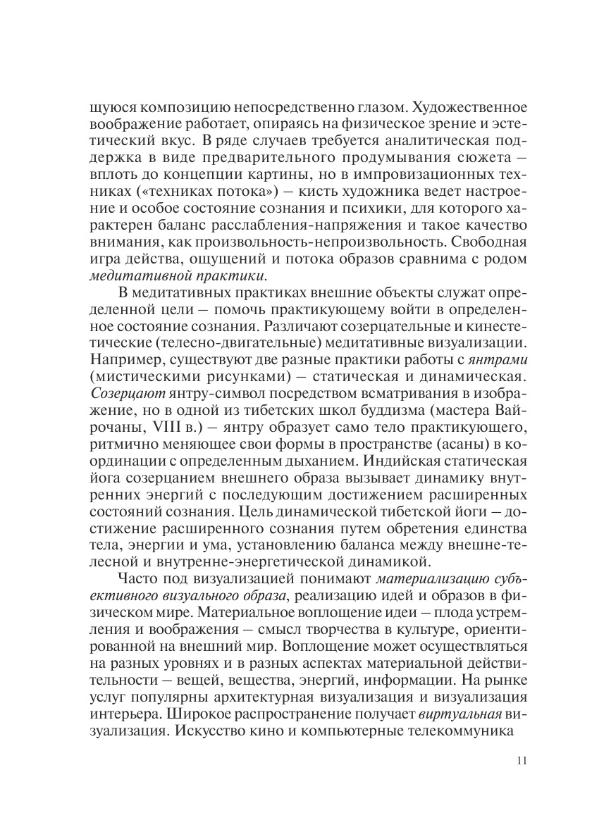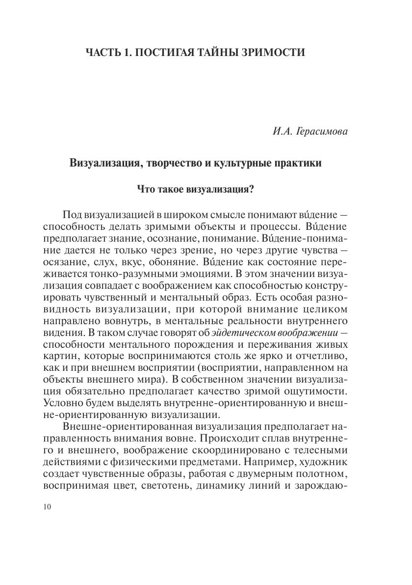 В книге представлены результаты междисциплинарных исследований проблем визуализации и образного мышления. Эпистемологи предлагают системные модели создания и восприятия зрительных образов. Обсуждение проблемы восприятия форм природы вносит вклад в синергетическую парадигму. Ряд работ посвящен анализу художественного образа в живописи, литературе, кинематографе, архитектуре. Различные точки зрения на индивидуальные, социальные, политические и культурные образные реальности представлены специалистами по психологии, антропологии, политологии, культурологии. Книга предназначена для специалистов различного профиля, интересующихся проблемами творчества.