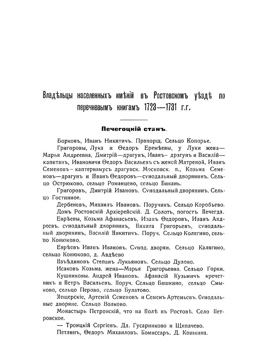 Печатная книга «Владелцы населенных имений в Ростовском уезде по перечневым книгам 1723-1731 года» в мягкой обложке, язык - русский. В книге 74 страниц, она напечатана на белой офсетной бумаге плотностью 80 г/м². Формат издания — 148x210 мм. Все книги аккуратно упаковываем в прочный трёхслойный непрозрачный картонный конверт.