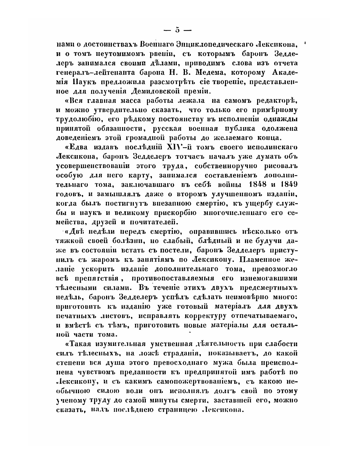 Военный энциклопедический лексикон впервые издавался с 1837 по 1850 год и насчитывает 14 основных томов и один дополнительный (вышел в 1852 г.). Этот огромный труд обязан своим появлением почти исключительно энергии и настойчивости его редактора барона Л. И. Зедделера, на котором лежала вся основная масса работы. По сути своей «Лексикон» являлся первой русской военной энциклопедией