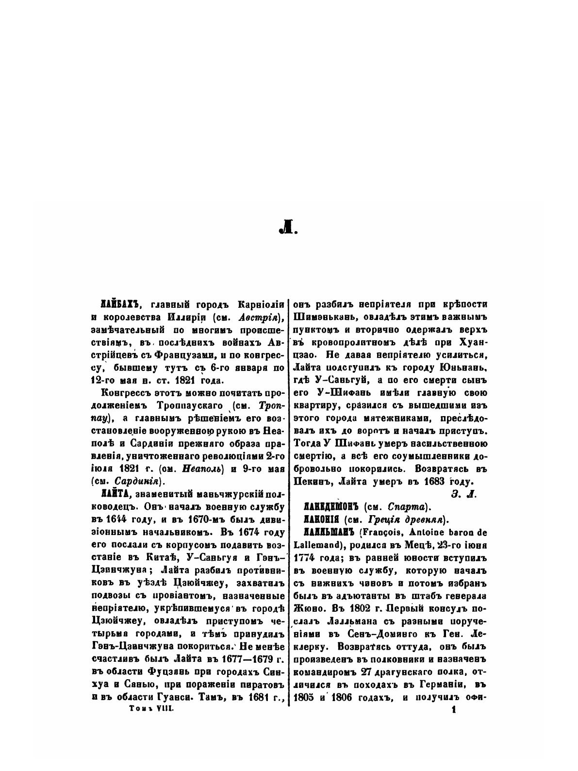 Военный энциклопедический лексикон впервые издавался с 1837 по 1850 год и насчитывает 14 основных томов и один дополнительный (вышел в 1852 г.). Этот огромный труд обязан своим появлением почти исключительно энергии и настойчивости его редактора барона Л. И. Зедделера, на котором лежала вся основная масса работы. По сути своей «Лексикон» являлся первой русской военной энциклопедией.