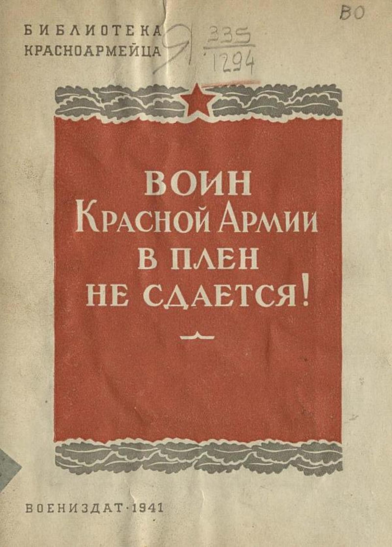 Брычев, Николай Федорович. Воин Красной Армии в плен не сдается! — Москва : Воениздат, 1941. — 24 с.; 17 см. — (Библиотека красноармейца).