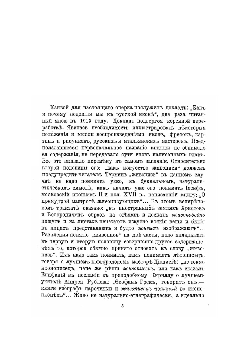 Со 105 воспроизведениями икон, фресок, картин и рисунков русских, византийских и итальянских художников. Оригинальная обложка. Листы разрезаны вручную. Сохранность хорошая. Разрывы по краям обложки. Корешок разорван на две части. Канвой для настоящего очерка послужил доклад: "Как и почему подошли мы к русской иконе", два раза читанного автором в 1915 году. Доклад подвергся коренной переработке. Большинство фотографий сделаны М.А.Сахаровым и П.В.Орловым.