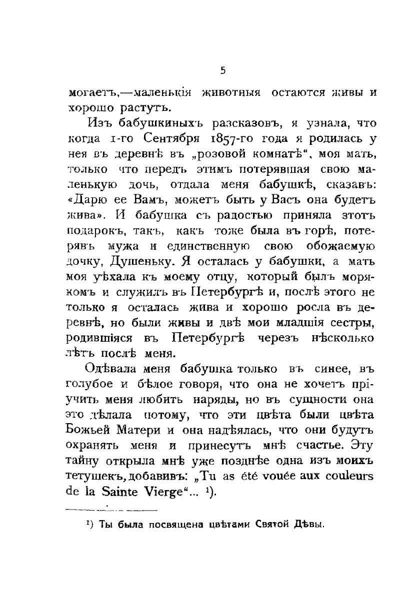 Воспоминания Александры Васильевны Унковской (урожд. Захарьина) охватывают период ее детства и юности, когда она жила в имении своей бабушки Красном Тульской губ. Ее воспоминания очень светлые, проникнуты любовью к своим родным и близким. Читаются они очень легко, так как написаны великолепным русским языком. Книга музыканта-скрипачки была издана в 1917 году.