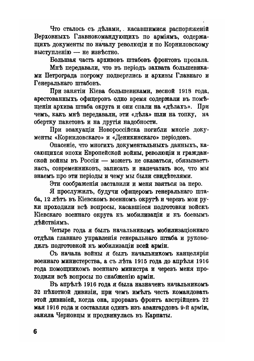 В I томе воспоминаний генерала А.С.Лукомского освещаются след.вопросы: Период, предшествовавший европейской войнe и подготовка к ней; Период европейской войны и государственный переворот; Начало разрухи в России; Борьба с большевиками; Корниловское выступление и начало Добровольческой армии.