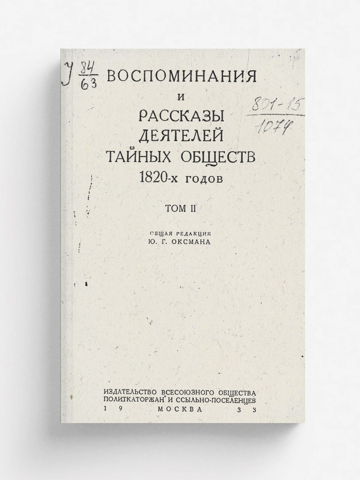 Воспоминания и рассказы деятелей тайных обществ 1820-х годов. т. 2: Т.2. — Москва : Изд-во Всесоюзн. о-ва политкаторжан и ссыльно-поселенцев, 1931-1933. — 453, [II] с.; 22 см.