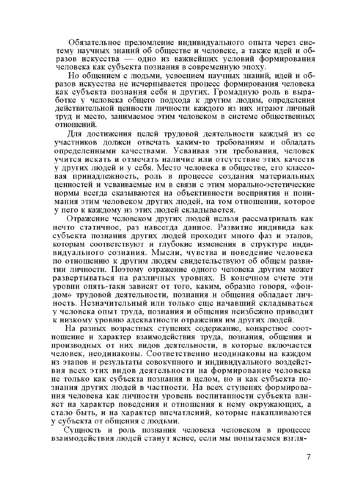 Монография посвящена восприятию и пониманию людьми друг друга. В ней рассматриваются закономерности и механизмы восприятия и понимания человека как объекта познания, дается анализ психологической интерпретации личности личностью и показывается, как на эту интерпретацию воздействуют характеристики личности, связанные с ее возрастом, профессией и индивидуально-неповторимым своеобразием. Монография рассчитана на специалистов, представляющих гуманитарные науки, но ее с интересом прочтут все читатели, которые хотят разобраться в законах, по которым строится общение людей.
