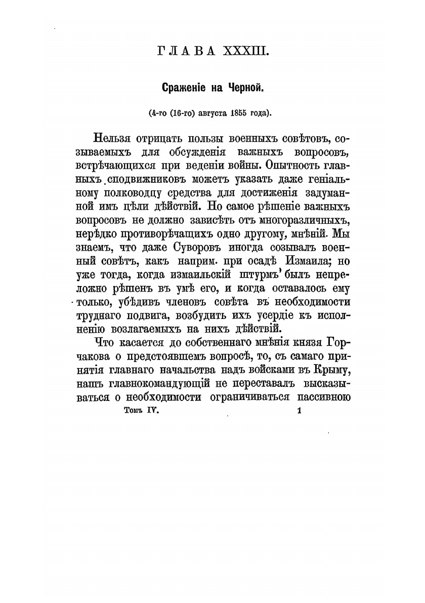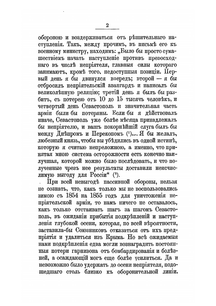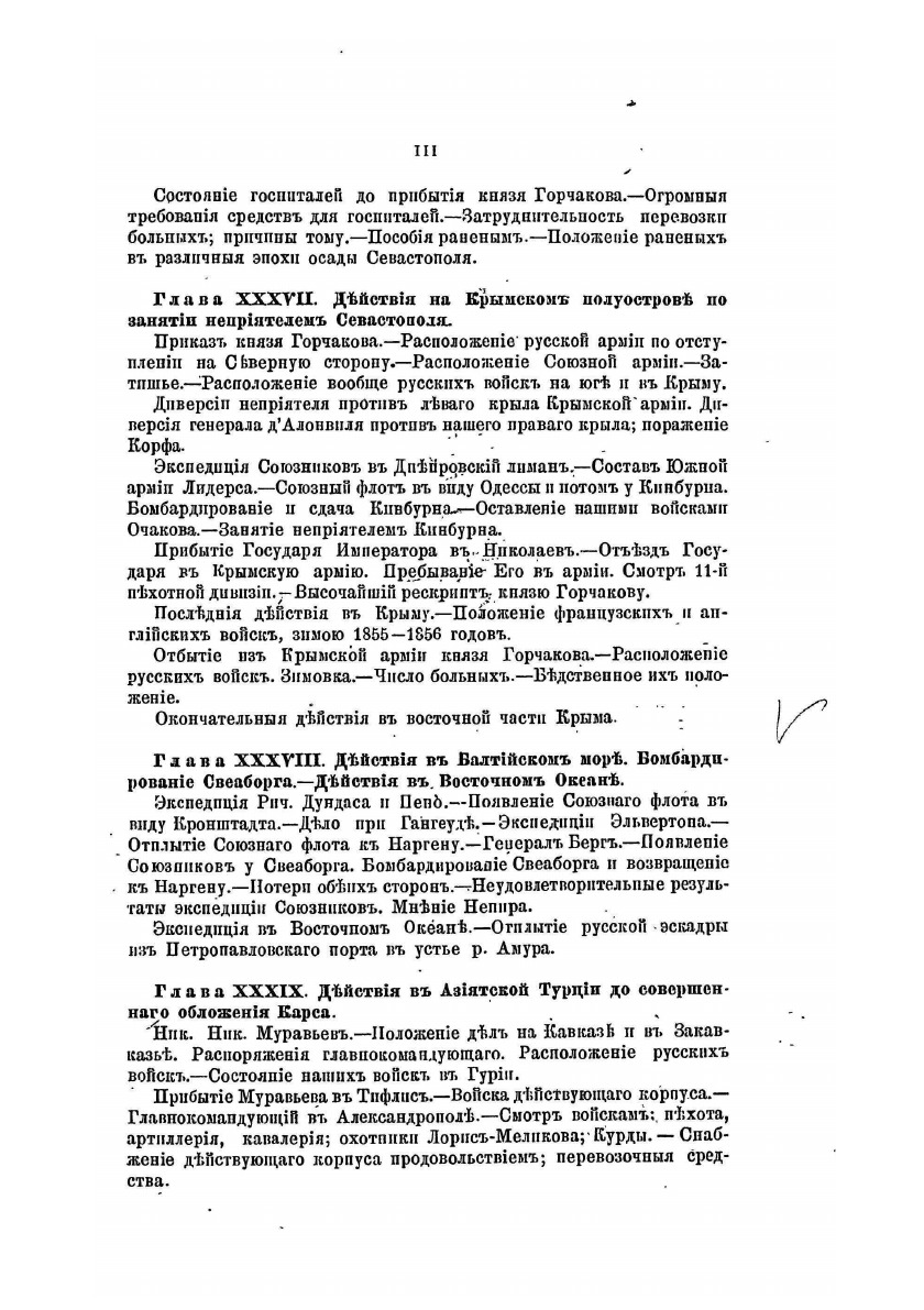 Автор видит главную причину неудовлетворительных результатов Крымской войны в том, что Русская армия не успевала пользоваться неоднократно встречавшимися благоприятными случаями для поражения неприятеля. Он ставит цель доказать эту причину на основании несомненных фактов, используя все лучшие русские и иностранные сочинения, относящиеся к этой войне; официальные донесения о военных действиях; записки – как изданные, так и остающиеся в рукописях; словесные показания многих лиц, принимавших деятельное участие в изложенных событиях. К сочинению прилагаются карты и планы.