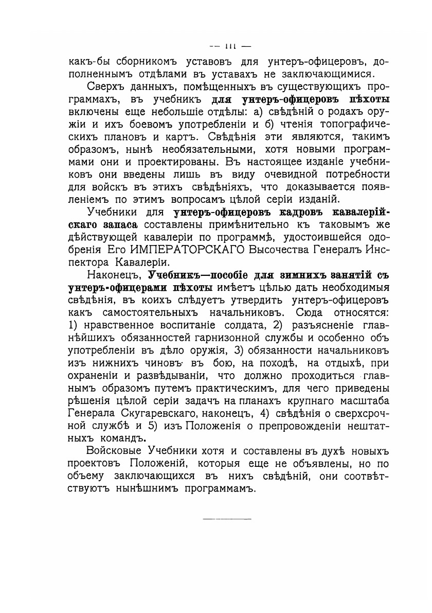 Войсковые Учебники составлены с разрешения Главного Штаба, с целью дать войскам совершенные руководства и вместе с тем, способствовать проведению во всей армии, по всем родам войск, единых взглядов на такие предметы обучения, которые составляют основу воспитания солдата, общие для всех войск: воинская дисциплина, значение присяги, знамени (штандарта), гарнизонной службы и т.п. Войсковые Учебники строго согласованы с изданиями всех воинских Уставов, Наставлений и Инструкций. Войсковые Учебники составлены под общей редакцией Генеральнаго Штаба Полковника Розеншильд-Паулина представителями от всех родов войск, из числа офицеров долго на практике занимавшихся обучением нижних чинов в качестве, заведующих учебными командами, командиров рот, эскадронов, батарей и дивизионов.
