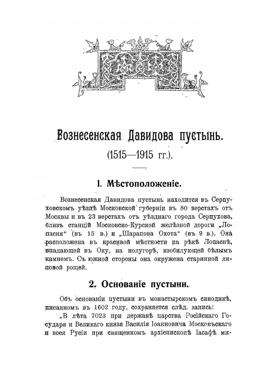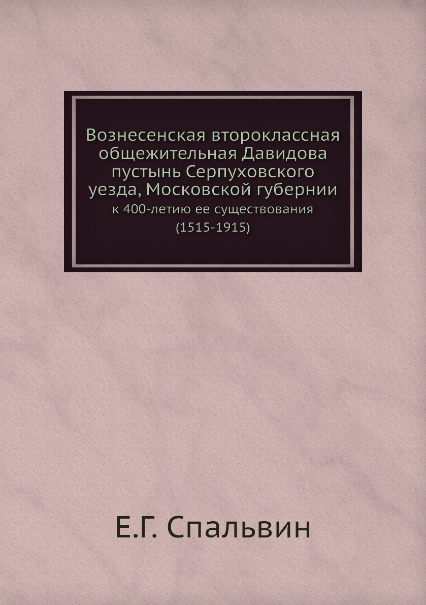 Печатная книга «Вознесенская второклассная общежительная Давидова пустынь Серпуховского уезда, Московской губернии, к 400-летию ее существования (1515-1915)» в мягкой обложке, язык - русский. В книге 106 страниц, она напечатана на белой офсетной бумаге плотностью 80 г/м². Формат издания — 148x210 мм. Все книги аккуратно упаковываем в прочный трёхслойный непрозрачный картонный конверт.