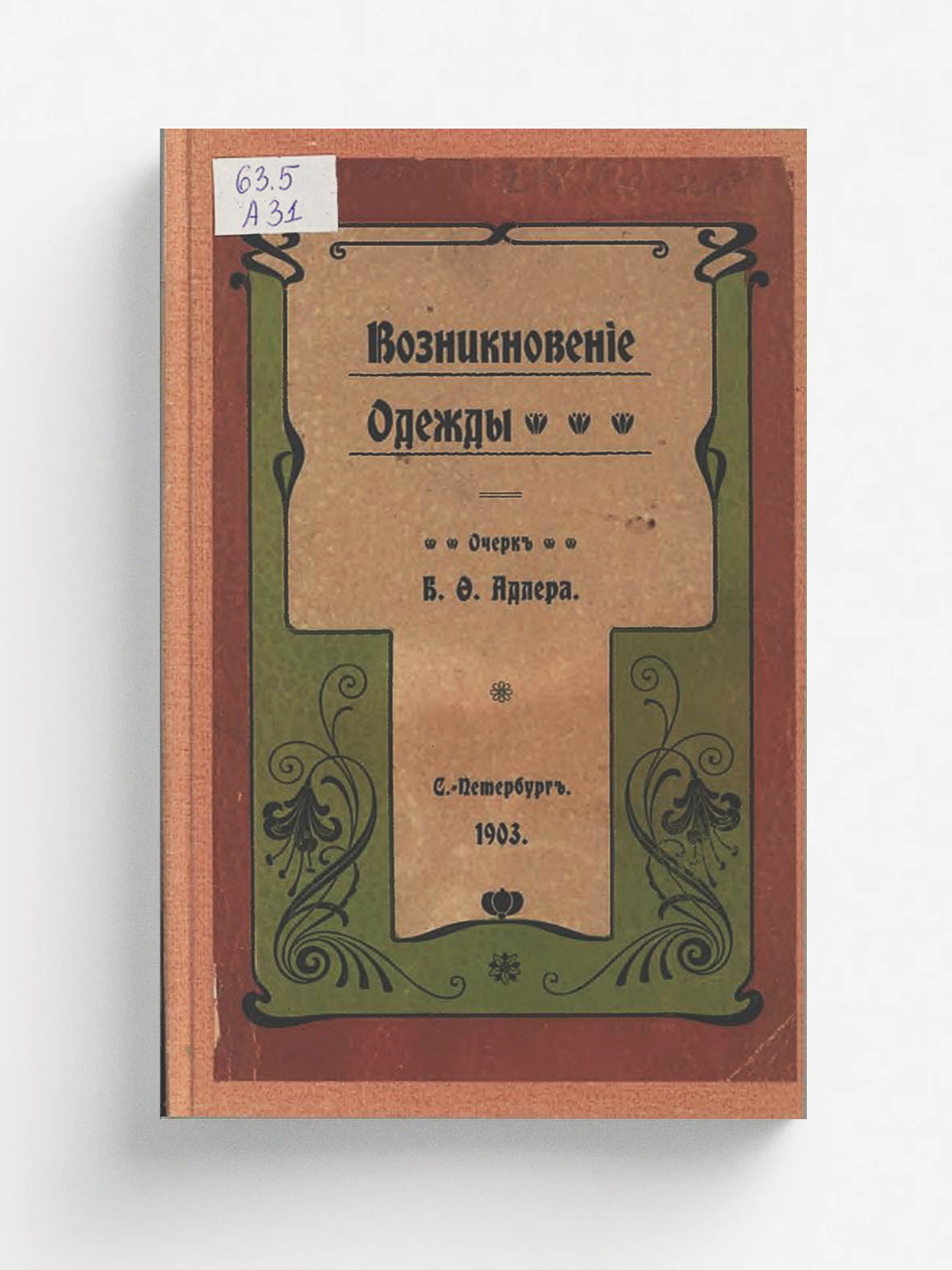 Адлер, Б. Ф. Возникновение одежды [Текст] : очерк / Б. Ф. Адлер. — Санкт-Петербург : Художеств. Типо-Литография А. К. Вейерман, 1903. — 88 с.; см.