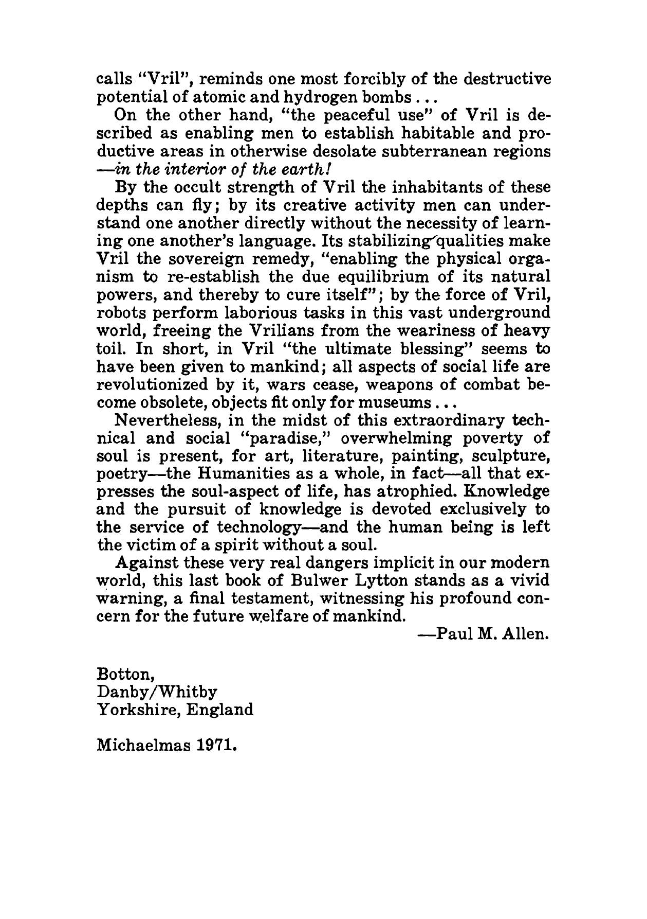 Печатная книга «Vril, The Power of the Coming Race» в мягкой обложке, язык - английский. В книге 253 страниц, она напечатана на белой офсетной бумаге плотностью 80 г/м². Формат издания — 148x210 мм. Все книги аккуратно упаковываем в прочный трёхслойный непрозрачный картонный конверт.