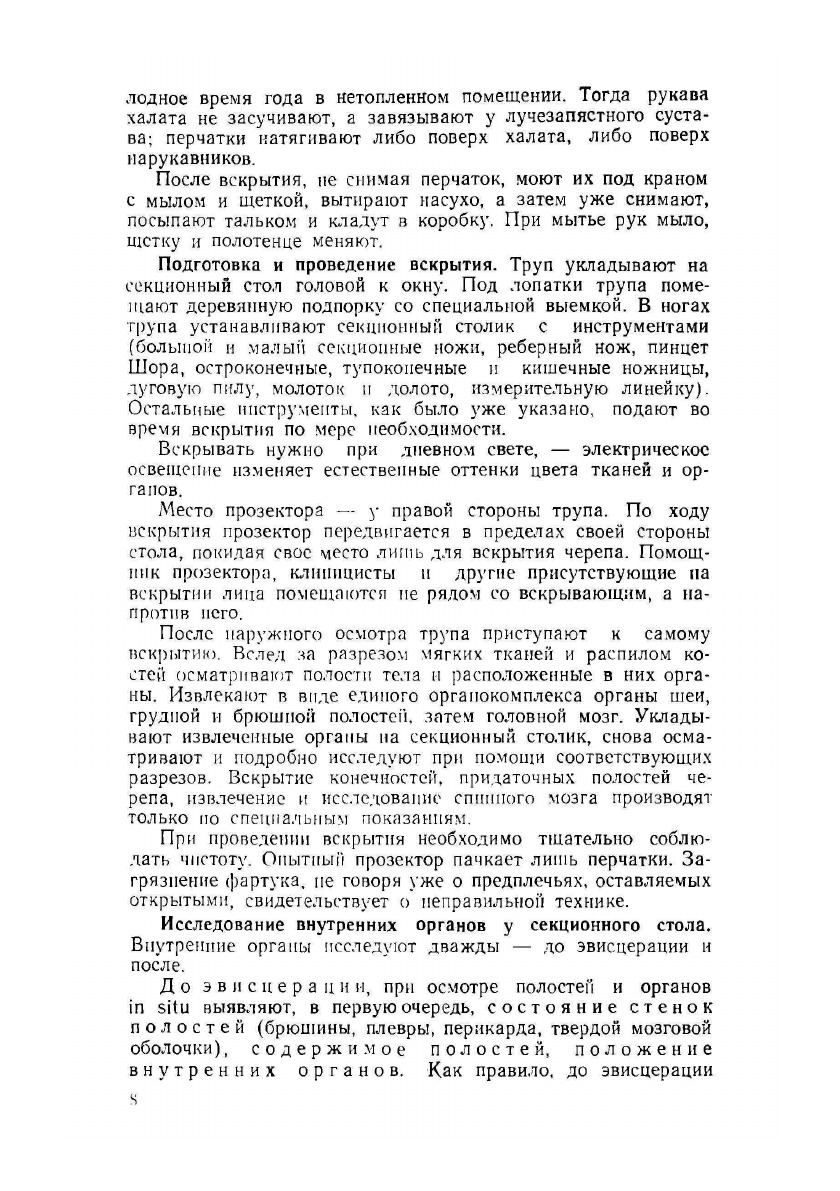 Г.В. Шор предложил извлекать органы не поодиночке, не группами, а целым органокомплексом. Преимущество способа Шора заключается в том, что полная эвисцерация органокомплекса позволяет сохранять естественные связи между органами, а это является необходимым условием при исследовании патологически измененных отношений. Способ вскрытия по Шору более, чем другие, соответствует современным методологическим представлениям о целостности организма. Распространение способа вскрытия по Шору затруднялось тем обстоятельством, что до настоящего времени не имелось подробного руководства. Издание такого руководства является давно назревшей необходимостью. Однако следует оговориться, что способ вскрытия по Шору претерпел с течением времени некоторые изменения. В настоящем руководстве способ вскрытия по Шору излагается в модификации Гаршина. Вскрытие отдельных внутренних органов после эвисцерации имеет некоторые особенности, определяющиеся тем, что органы находятся в составе органокомплекса. На эти особенности и будет обращено внимание при описании соответствующих приемов. Что же касается вскрытия головы, позвоночника и конечностей, то по Шору оно производится так же, как при других способах. Поскольку рисунки подчас заменяют пространные описания, настоящее издание снабжено сравнительно большим количеством иллюстраций как оригинальных, так и заимствованных у Б. Фишера, Науверка, Летюля, И.И. Медведева.