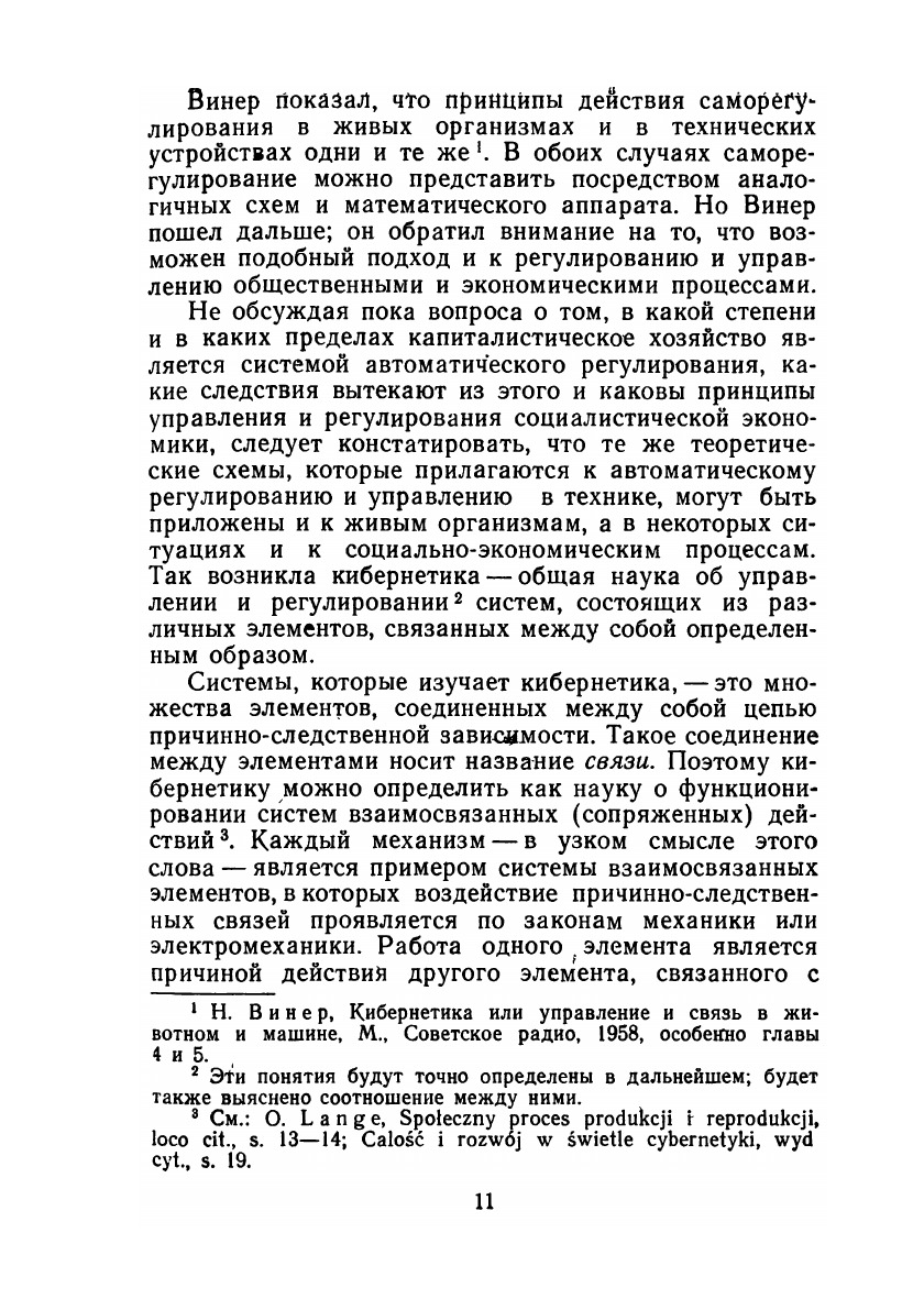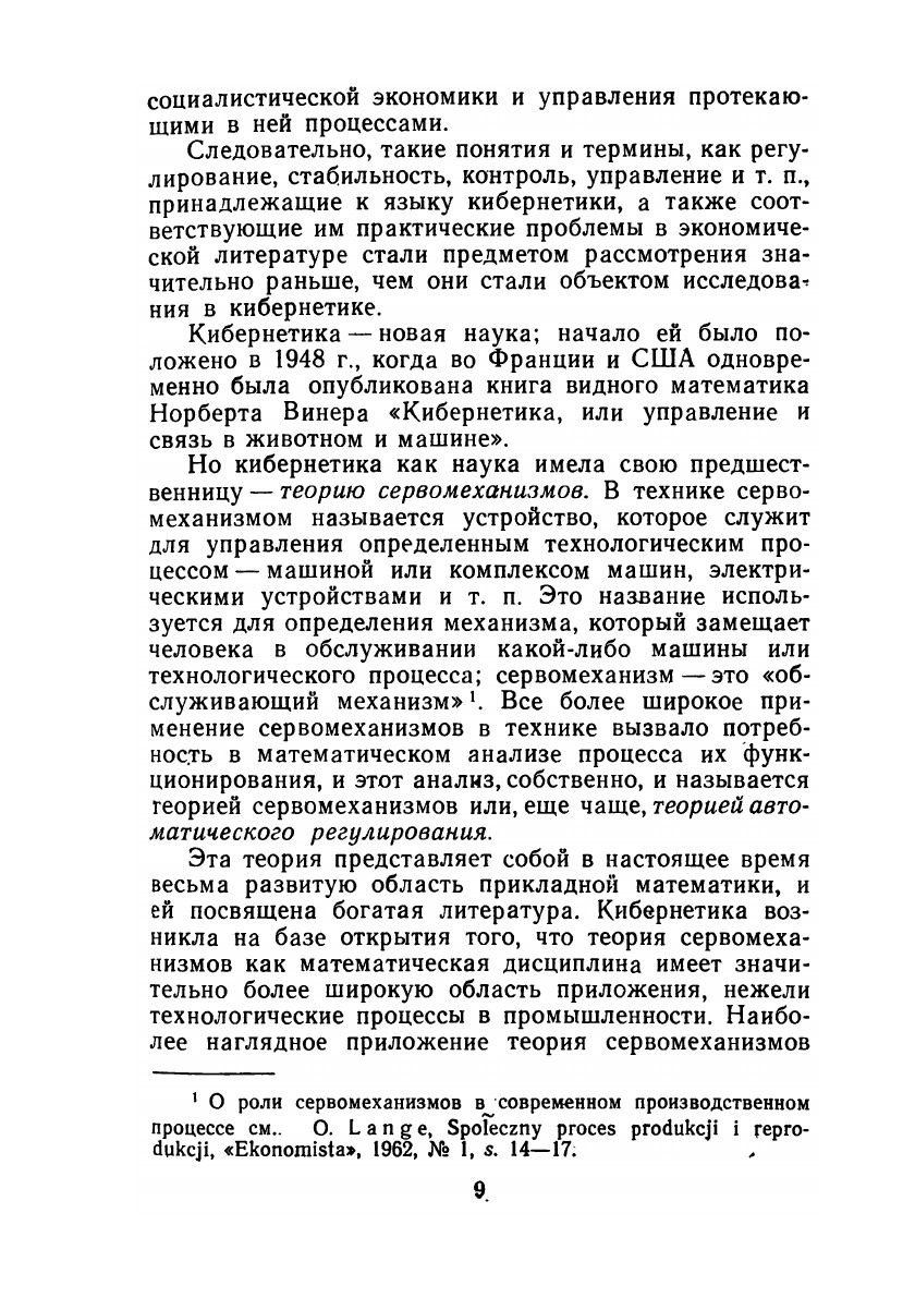В книге наряду с конкретным анализом экономических проблем изложены принципы теории автоматического регулирования и теории надежности, методы планирования и управления экономикой, схемы общественного воспроизводства. В работе последовательно рассматриваются модели простого и расширенного воспроизводства, многоотраслевые и, в частности, межотраслевые модели планирования различных звеньев народного хозяйства, исследуются процессы ценообразования, представлена оригинальная методика анализа национального дохода. Впервые изучается проблема надежности и точности экономических систем, механизм действенного регулирования экономики. Это первая подобная работа на русском языке. Книга рассчитана на экономистов, математиков, инженеров, работников научно-исследовательских учреждений и всех интересующихся проблемами кибернетики.