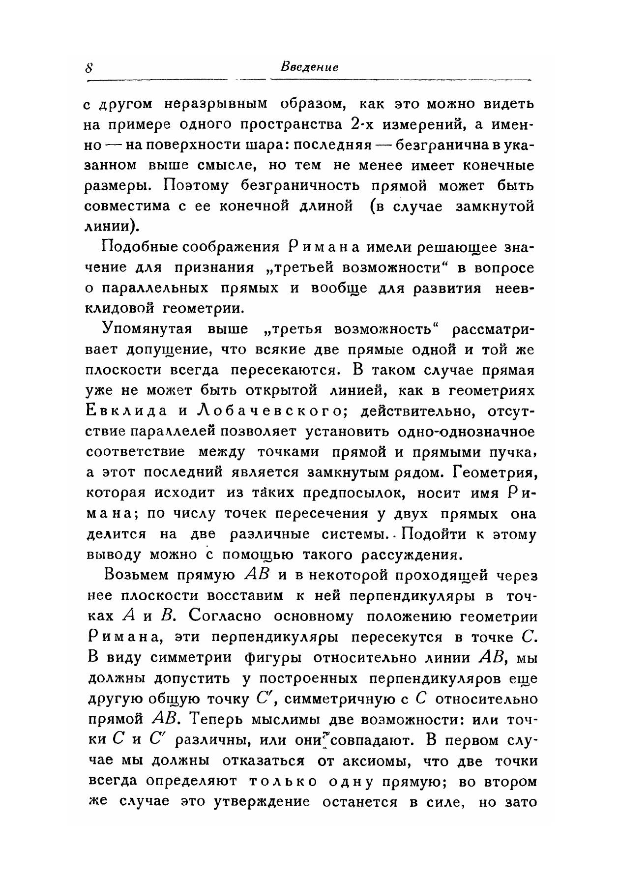 Настоящая книга посвящена неевклидовой геометрии, носящей имя немецкого математика Римана (точнее говоря, здесь главным образом будет идти речь об эллиптической форме ее).