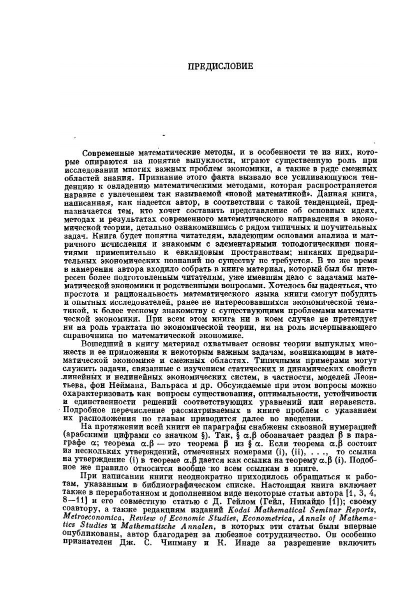 В книге дано систематическое и углубленное изложение основ теории выпуклых множеств и ее приложений к математической экономике. Центральное место уделено обсуждению статических и динамических свойств экономических моделей, вопросам существования, единственности, оптимальности и устойчивости решений. Наряду с классическими приводятся результаты, полученные в последнее время и не опубликованные в монографической литературе, такие, как «теоремы о магистрали», нелинейные модели сбалансированного роста, теоремы о теоретико-игровой интерпретации экономического равновесия.Книга написана на высоком научном уровне и отличается продуманностью и ясностью изложения необходимые для чтения математические сведения собраны в отдельной главе. Все это делает книгу полезной и специалисту, желающему получить квалифицированный обзор по современной математической экономике, и студенту, приступающему к серьезному изучению предмета.